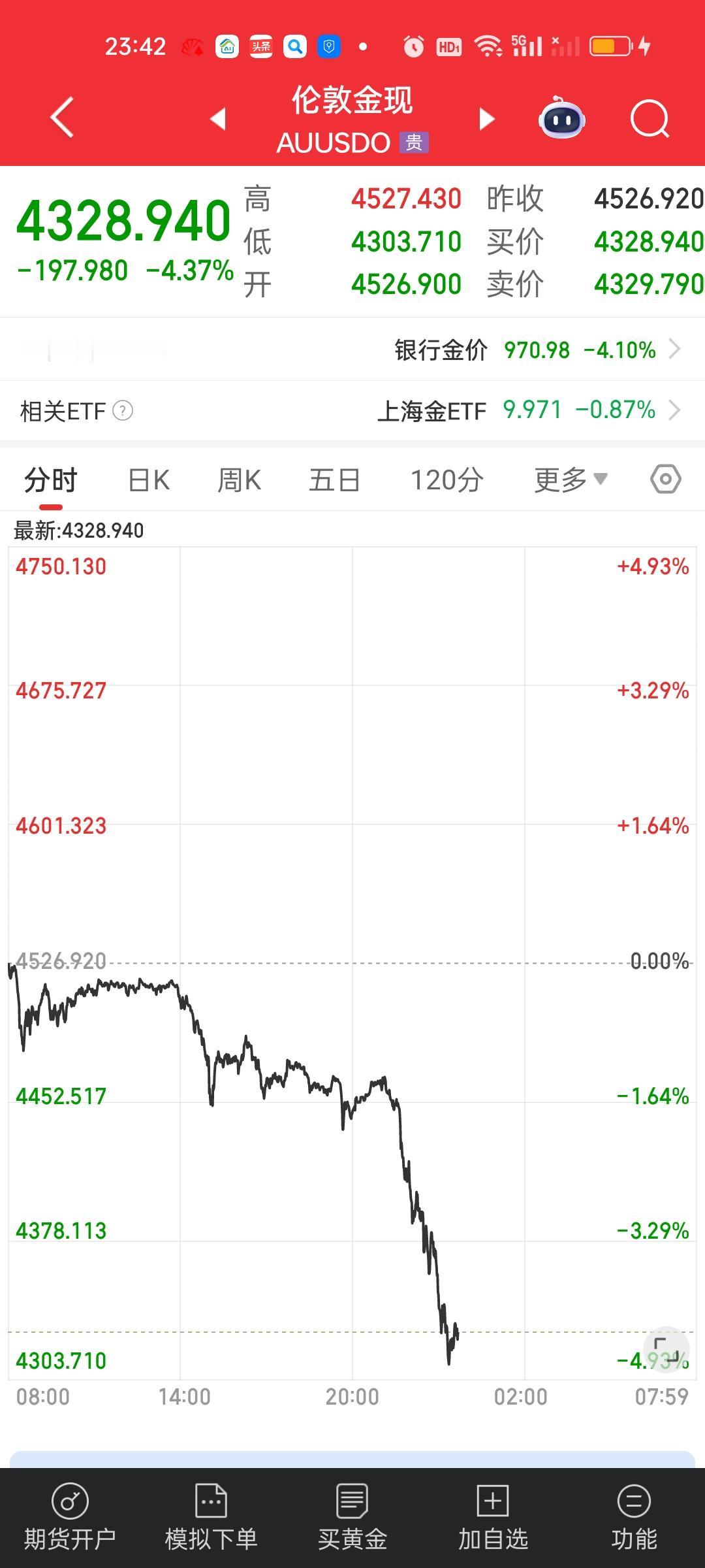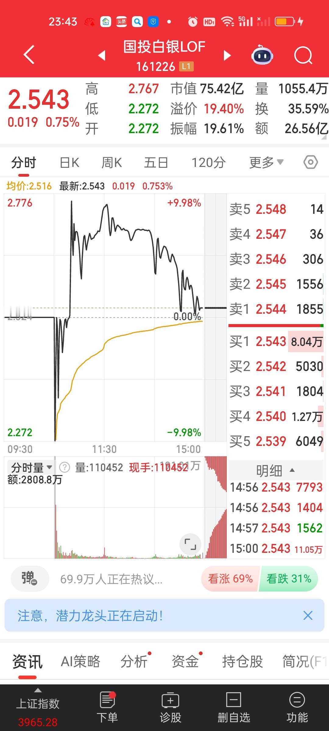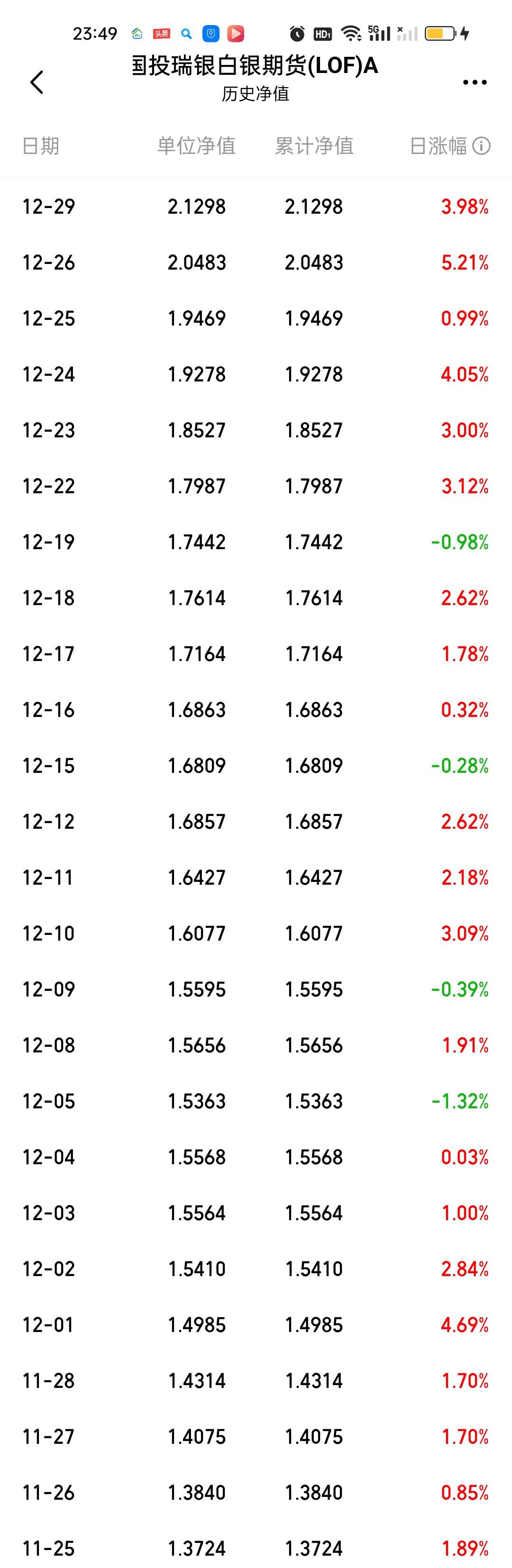 今天晚上黄金和白银遇到史诗级的暴力下杀,其中伦敦银现暴跌近14%。沪银跌幅也在7.2%以上,黄金也是大跌,跌幅也都在4.50%以上。按照现在的架势,国投白银LOF今天收盘虽然还有19.40%的溢价,但如果明天开盘就跌停,溢价就将不复存在。