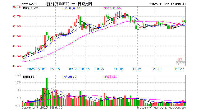 12月29日新能源50ETF(516270)份额减少900.00万份,最新份额3.82亿份,最新规模2.57亿元