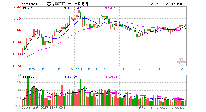 12月29日,芯片50ETF(516920)涨0.10%,成交额2705.31万元。当日份额减少250.00万份,最新份额为7.24亿份,近20个交易日份额减少9000.00万份。最新资产净值计算值为7.51亿元。