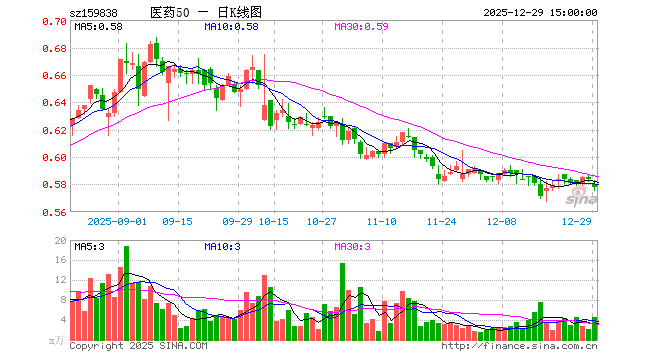 12月29日医药50ETF(159838)份额增加100.00万份,最新份额2.92亿份,最新规模1.68亿元