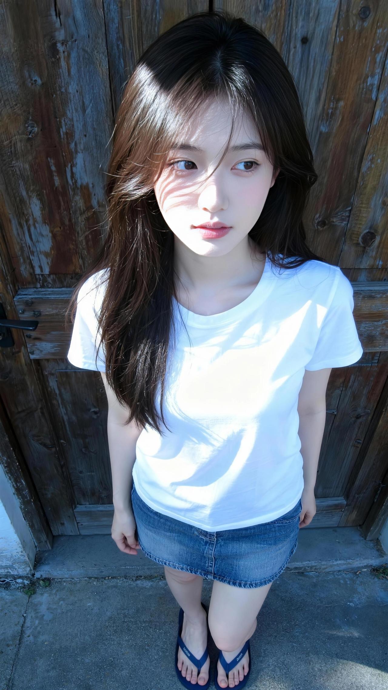 阳光下的清新少女,简约白T恤搭配牛仔短裙,轻松自在。女生如何穿出天真浪漫少女感?