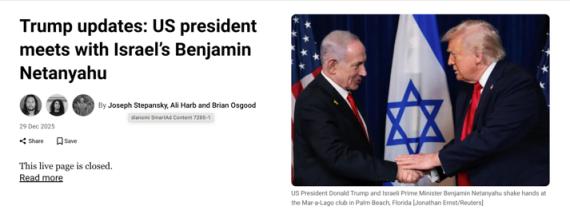 △12月29日,特朗普与内塔尼亚胡在海湖庄园会面