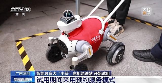 近日,在广东深圳黄木岗交通枢纽,智能导盲犬“小蒜”首次试点启用,为视障人士地铁出行提供便利,试用期间采用预约服务模式。