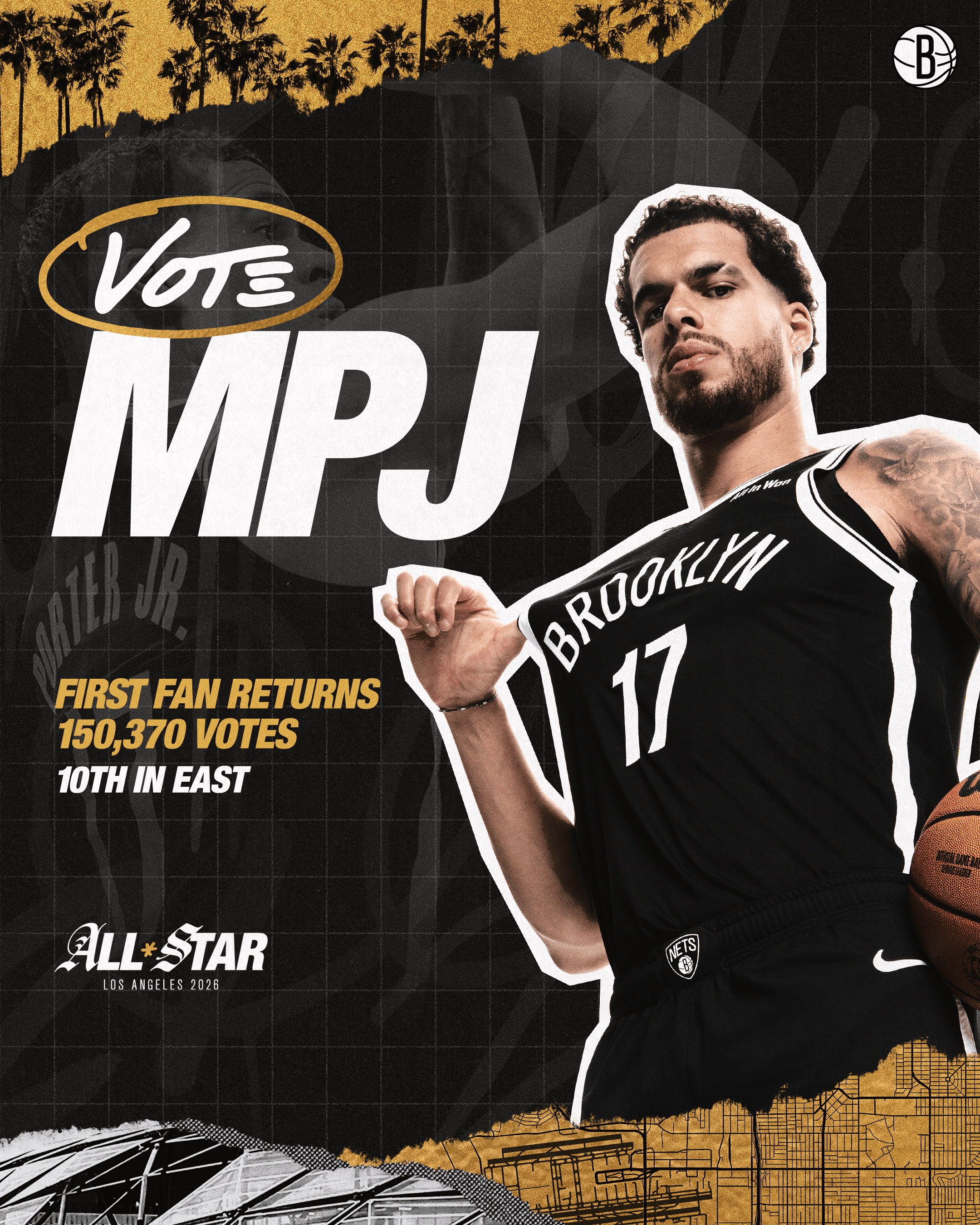 篮网官方分享海报:迈克尔-波特在全明星投票中位列东部第十,继续为他投票吧。