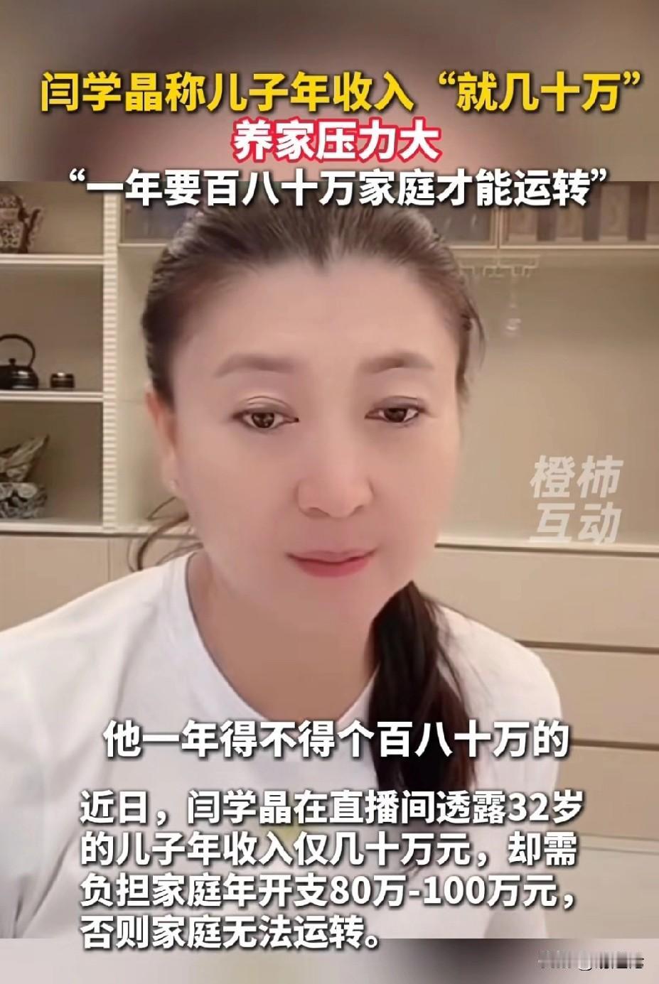 哭穷的闫学晶真是个好妈妈,儿子一年挣不到百八十万,压力很大啊!我妈就不行,我一年即使只能挣个万儿八千,她都不帮我哭穷。但我隔壁的老阿姨就不一样了,她女儿在医院工作,老阿姨经常要和我们“对账”,这个月发了多少,那个节发了多少,同时还是要加上一句:那你没有我女儿多! 我看她女儿加在一起,也就几十万吧,可老阿姨竟然不哭穷,还整天觉得“收入颇丰”! 这就是真实的人和实际的人生。