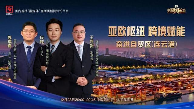 12月28日,中央电视台CCTV4中文国际频道《中国舆论场》栏目推出特别策划《勇立潮头启新程·奋进自贸区》连云港篇,聚焦中国(江苏)自由贸易试验区连云港片区,解锁这片20.27平方公里土地上的开放密码与创新动能。