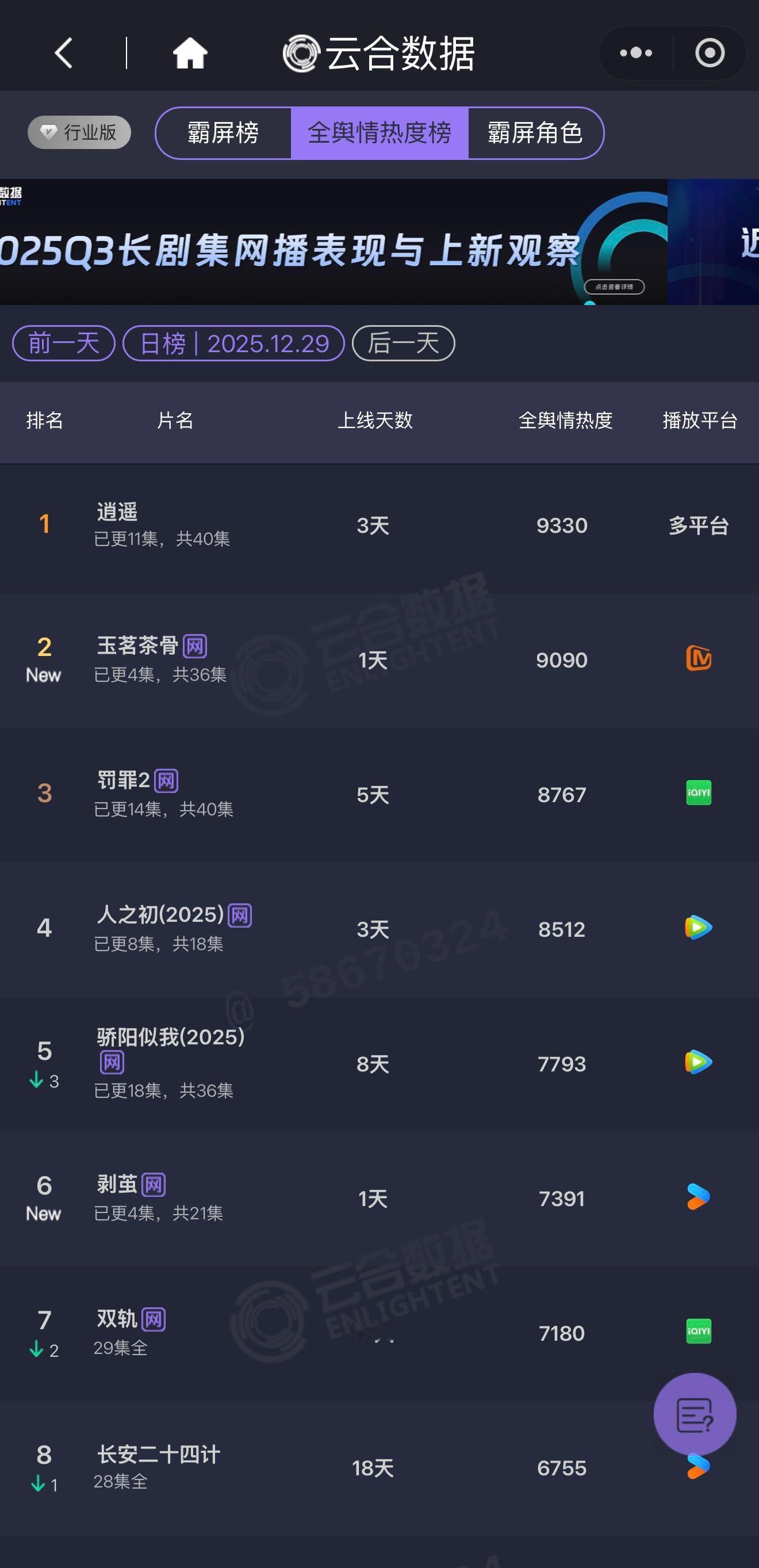 逍遥数据 看了一眼逍遥的数据,从开播到现在热度都在稳步上升,云合这些各个平台数据也不错,网播双平台热度也没有横盘过,猫眼灯塔的数据累计播放量都破亿了,其实真挺不错的了,从数据上看感觉是可以去品鉴一下 电视剧逍遥