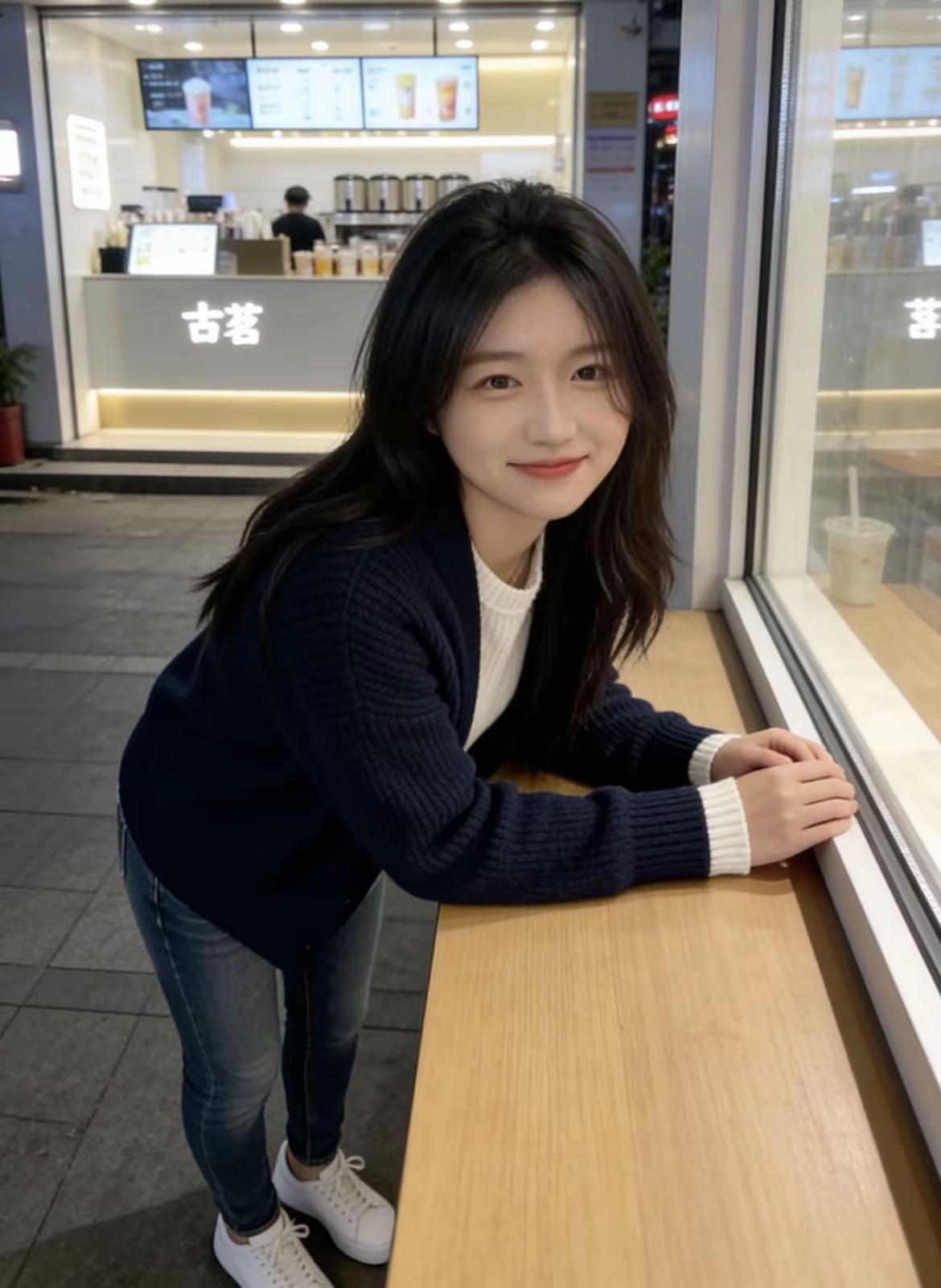 古茗夜晚的甜,全写在脸上啦。古茗打卡✅ 抿嘴笑是装可爱吗?是真可爱穿搭 每日分享 日常分享 邻家女孩