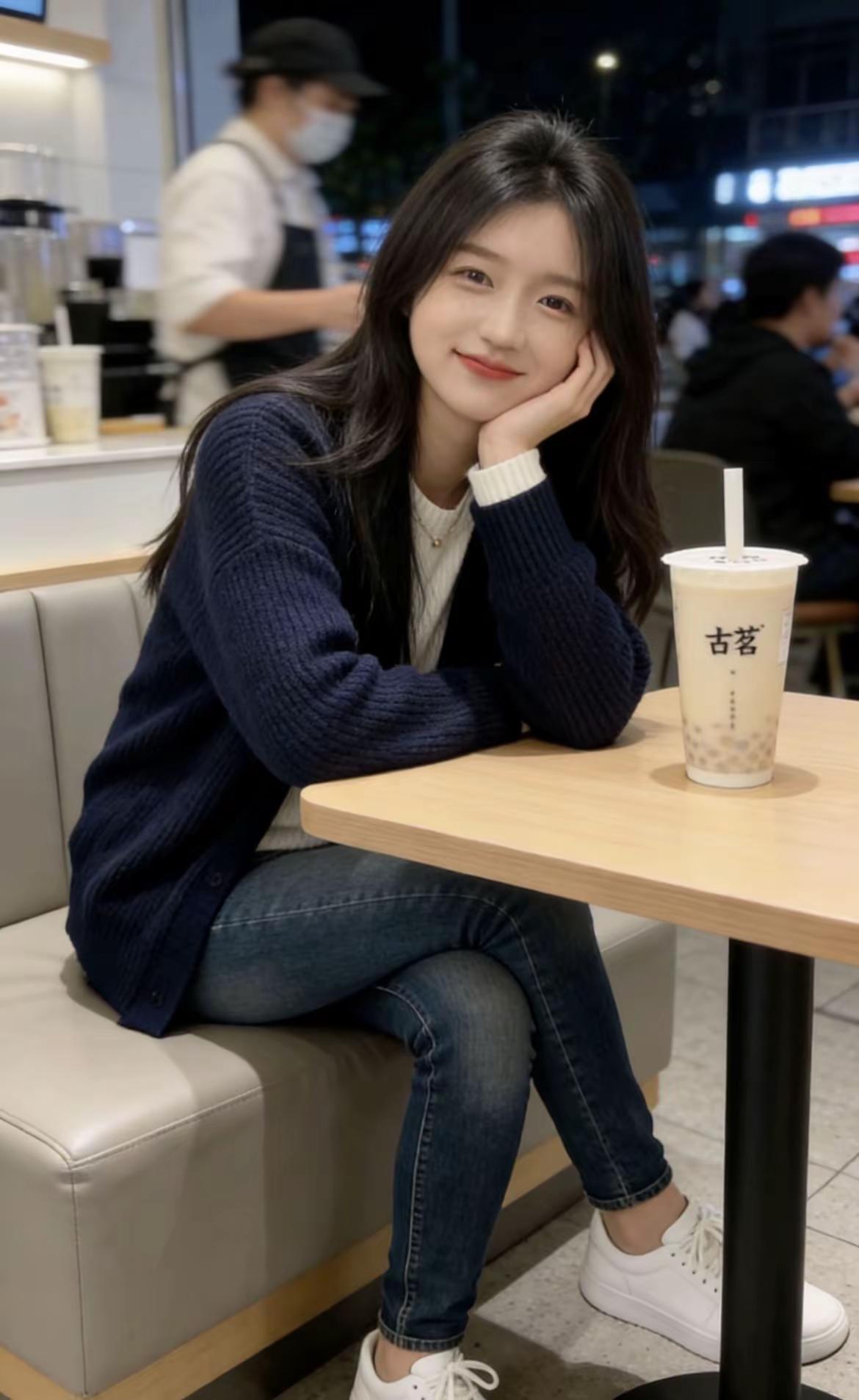 古茗夜晚的甜,全写在脸上啦。古茗打卡✅ 抿嘴笑是装可爱吗?是真可爱穿搭 每日分享