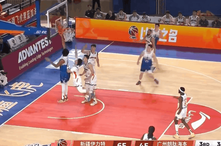 劳森篮下轻松上篮再次打进,新疆第三节领先广州22分