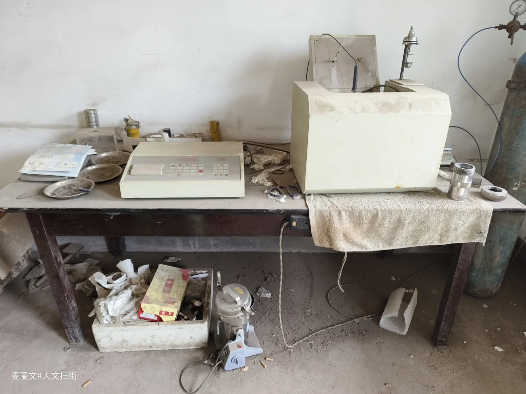 一间实验室里,落满煤灰的多用热量仪、锈蚀的瓦斯检测仪、泛黄的地质图纸、一只缺了玻璃罩的煤样采集器陈列着。它们不再运转,只有尘埃在斜照的阳光里缓慢浮动,像一场无声的雪。