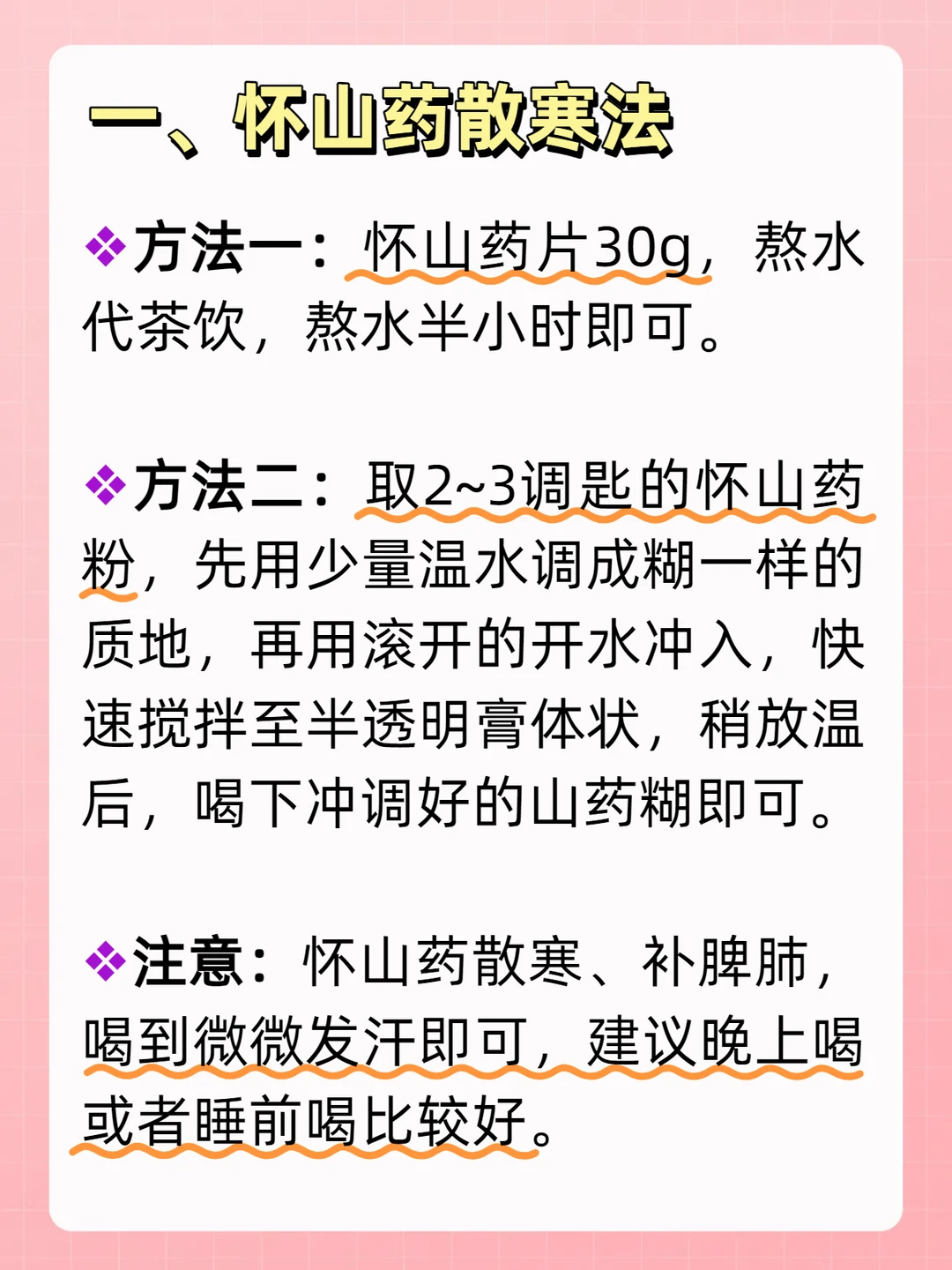 怀山药散寒、补脾肺,喝到微微发汗即可,建议晚上喝或者睡前喝比较好。