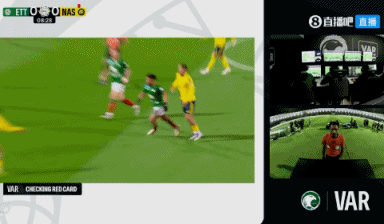 直播吧12月31日讯沙特联第12轮,达曼协作vs利亚的胜利,开场仅6分钟,纳赛尔踩到对手跟腱被出示红牌,裁判回看VAR后取消红牌!