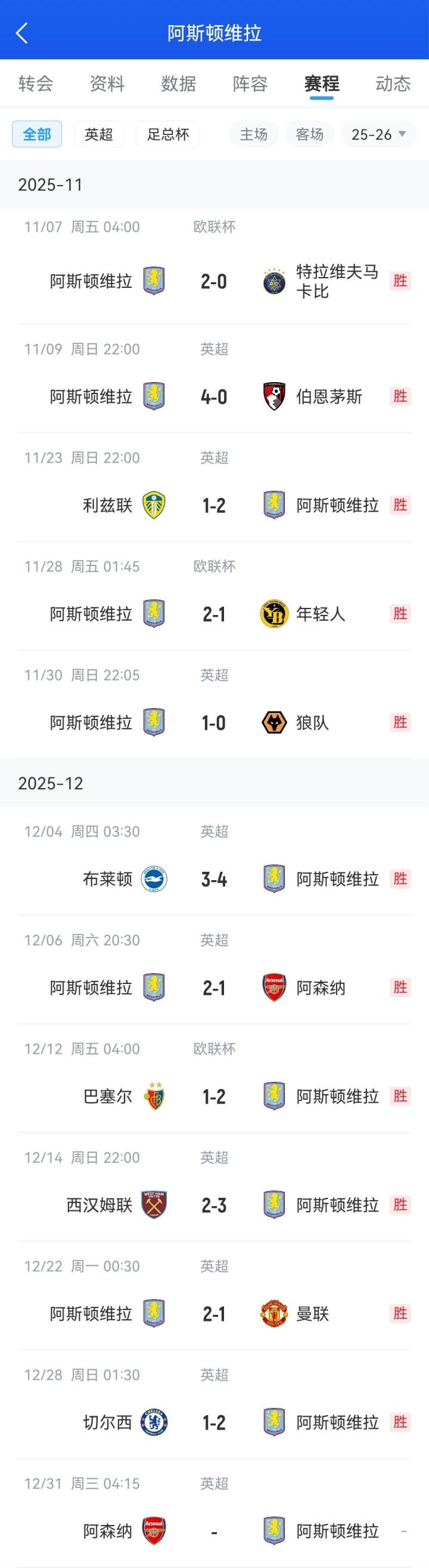 与此同时,维拉近2个月创造的各赛事11连胜也就此终结!