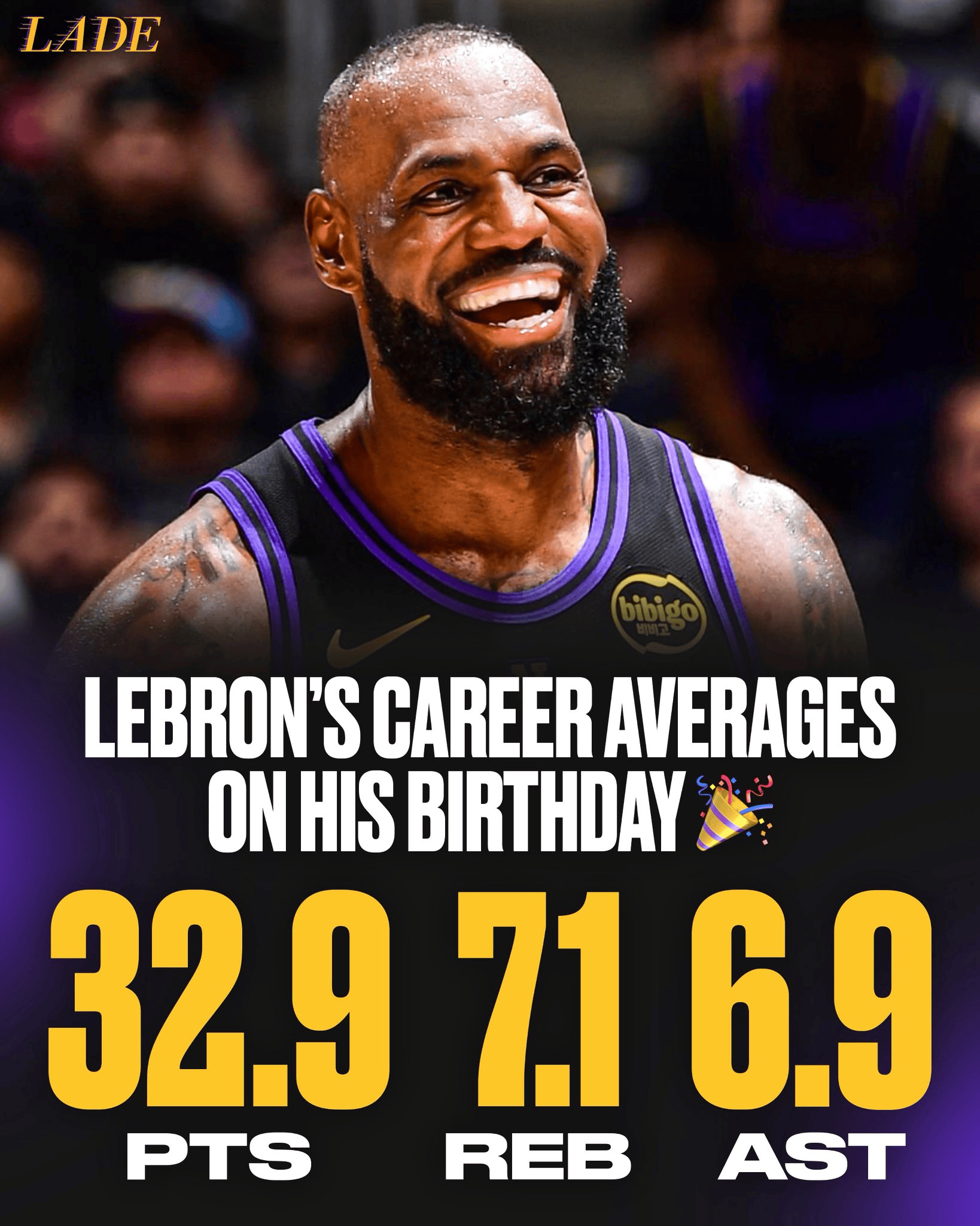 虎扑12月31日讯湖人球员勒布朗-詹姆斯今日迎来41岁生日。