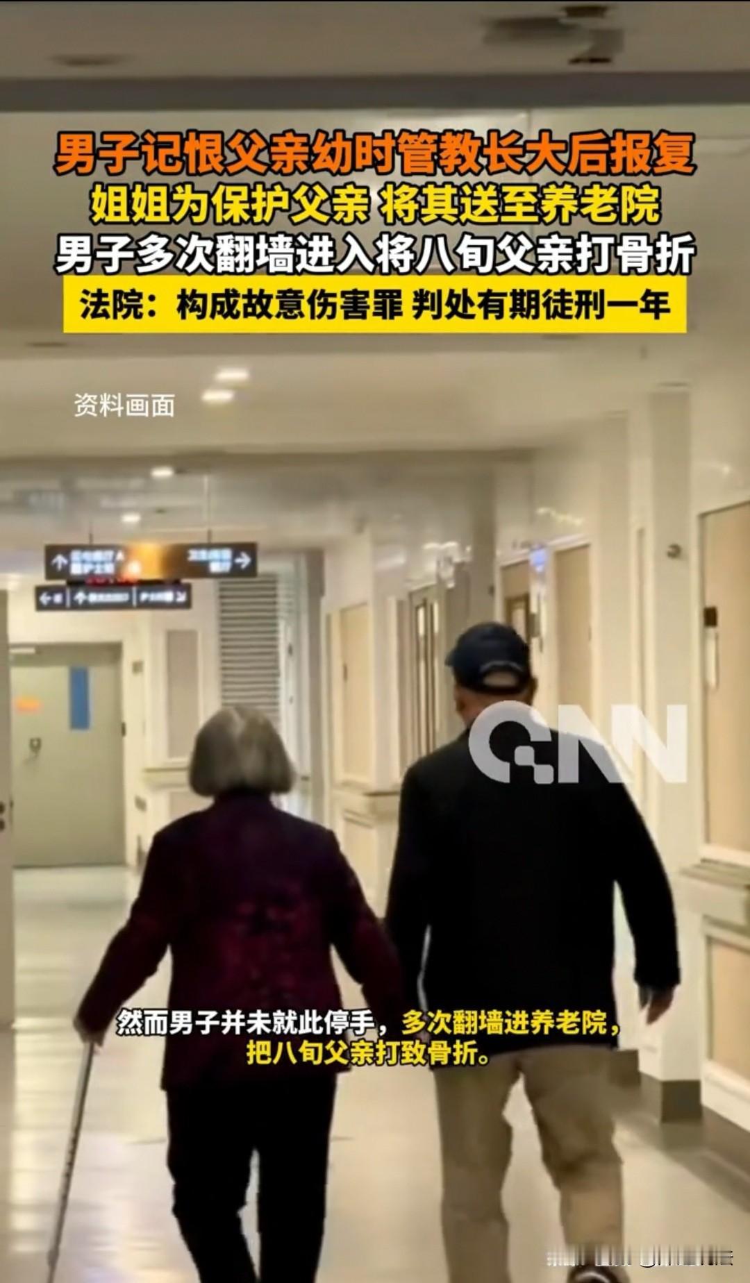 真是刷新三观!山东青岛,男子只因记恨幼时父亲管教严格,竟记恨数十年,从2021年起多次施暴,趁着老父八旬体弱,屡次翻墙闯进养老院拳脚相加,把亲爹打致骨折,2025年底被判有期徒刑一年,网友直呼“罪有应得”! 要说这事,还得从男子的童年说起。 小时候父亲对他管得严,学习、生活都有规矩,可在男子眼里,这不是父爱,而是“故意为难”。 随着年纪渐长,这份不满没被时间冲淡,反倒变成了刻在骨子里的怨恨,成年后干脆和父亲断了来往,连基本的赡养都抛在脑后。 时间来到2021年6月,这份积压多年的怨恨首次爆发,男子在老家住处直接对父亲动手殴打。 姐姐看着老父亲可怜,又怕弟弟后续变本加厉闹事,思来想去,只能把父亲送进养老院——既能让老人得到专业照顾,也能借养老院的管理隔离开弟弟的骚扰。 本以为这是个万全之策,谁能想到,这反倒彻底点燃了男子的怒火。 男子得知父亲被送进养老院,非但没反思自己的不孝,还觉得是父亲和姐姐“联合起来躲着他”,是在“报复”当年他的“反抗”。 2024年2月22日,他第一次跑到养老院,趁着看管间隙找到父亲,再次实施殴打;同年7月5日,他又一次上门,这次的暴力直接导致八旬老父右腓骨骨折,经鉴定构成轻伤二级。 可施暴还没停止,2025年3月15日,男子第三次翻墙潜入养老院殴打父亲。 姐姐实在没办法,只能赶紧把父亲转移到另一家敬老院,可即便这样,也没能彻底摆脱弟弟的纠缠。 2025年下半年,他又三番五次跑到新的敬老院想找父亲“算账”,都被工作人员拦了下来。 可这男子也是个轴的,被拦次数多了,竟然还不死心,专挑深夜养老院看管松懈的时候,直接翻墙溜了进去! 找到父亲的房间后,男子积压了几十年的怨恨一下子爆发了,对着手无缚鸡之力的八旬老父,抬手就打、抬脚就踹。 老人年纪大了,骨头本就脆,哪里经得住这般殴打,当场就疼得蜷缩在地,身上多处软组织挫伤。 养老院工作人员发现后,赶紧冲进去制止,还第一时间报了警。 2025年6月10日,经过多地警方协作,男子最终被北京海淀警方抓获到案。 民警调取了两家养老院的监控录像,加上老人的伤情鉴定和工作人员的证言,男子多次殴打父亲的事实那是板上钉钉。 面对铁证,男子还嘴硬,说自己是因为当年父亲的管教留下了“心理阴影”,是“一时冲动”。 可这话谁信啊?从2021年到2025年持续施暴,还两次翻墙闯养老院,这分明是早有预谋的报复! 法院审理的时候明确表示,男子故意殴打年满八十周岁的亲生父亲,多次施暴且致其轻伤二级,已经构成故意伤害罪。 更过分的是,他长期不履行赡养义务,这种违背公序良俗的行为社会危害性更大,必须严惩! 最终,依据《刑法》第234条规定,判决男子犯故意伤害罪,判处有期徒刑一年。 这里给大家划个重点:《刑法》第234条明确说了,故意伤害他人身体的,处三年以下有期徒刑、拘役或者管制。 犯前款罪,致人重伤的,处三年以上十年以下有期徒刑;致人死亡或者以特别残忍手段致人重伤造成严重残疾的,处十年以上有期徒刑、无期徒刑或者死刑。 男子把老人打成轻伤,还存在多次施暴、针对老年人的情节,一年牢饭那是他应得的! 别说是亲爹,就算是陌生人,动手打人也得担责,更别说对着毫无反抗能力的老人下狠手,这不仅违法,更是丧了良心! 说真的,这事真的太让人寒心了。 父母养育子女一场,从小到大呕心沥血,就算当年管教方式可能有点严厉,可初衷不都是为了孩子能走正路、少犯错吗? 男子倒好,记恨几十年,从2021年第一次动手到2025年被抓,持续用暴力报复亲爹,把父亲的付出全抛在脑后,这哪里还有一点人伦道德? 姐姐为了保护父亲,又是送养老院又是转移住处,已经做得够周全了,可谁能想到弟弟能偏激到这份上? 父母老了,本该安享晚年,却被亲生儿子长达数年的纠缠殴打,想想都让人心疼。 对于这起男子记恨老父管教严、多年屡次施暴的事,大家觉得判一年轻了还是重了? 素材来源于光明网,2025年12月28日报道。