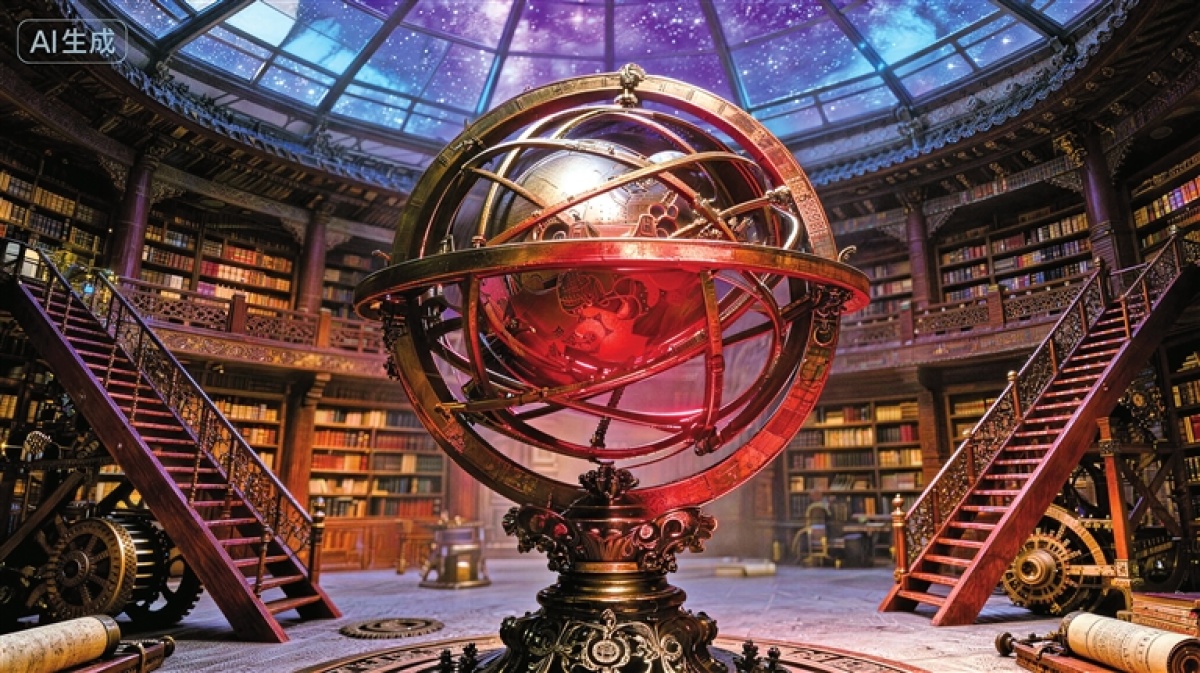 “不错,不然小友以为系统为何能精准定位五灵?”他缓缓引我来到观星台深处,一个设计精巧的藏书阁中。只见刚才的阶梯直通向藏书阁正中央,那里一座铜质浑天仪赫然在目,而我带来的土、金、水、木四灵正环绕其有序运转。“从你获得土灵那刻起,二十八宿轮盘就在计算五行的轨迹。”