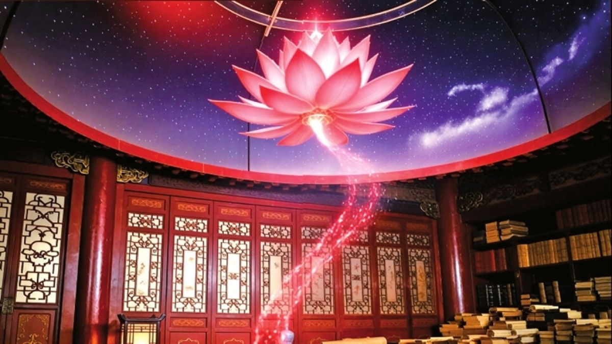 “因为,只有你。五百年后,你笔下的世界竟与我理想中的,完全相同。”说着,石宜的衣袖轻抚过浑天仪的铜环,刚才还是明代夜空的穹顶上,顿时显现出《未来有灵山》书里“科技高速发展而人类情感陷入困顿”的画面,“日月星辰,东升西落。此景本是人人仰望,却非人人理解”。