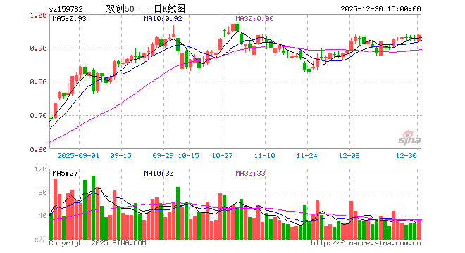 12月30日,双创50ETF(159782)涨1.08%,成交额2979.35万元。当日份额减少300.00万份,最新份额为8.82亿份,近20个交易日份额减少8700.00万份。最新资产净值计算值为8.26亿元。