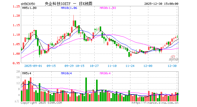 12月30日,央企科技50ETF(563050)涨0.00%,成交额601.40万元。当日份额减少100.00万份,最新份额为1.43亿份,近20个交易日份额减少1600.00万份。最新资产净值计算值为1.56亿元。