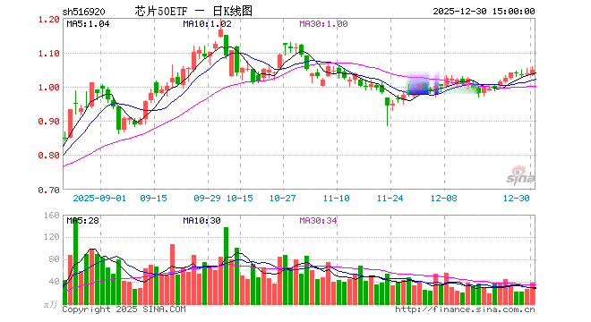 12月30日芯片50ETF(516920)份额减少250.00万份,最新份额7.22亿份,最新规模7.56亿元