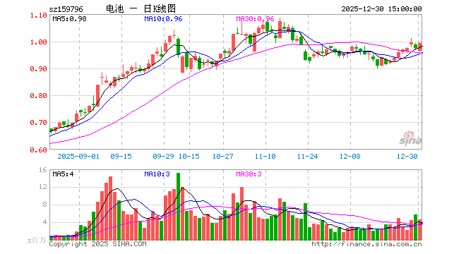 12月30日电池50ETF(159796)份额增加1.07亿份,最新份额95.57亿份,最新规模94.60亿元