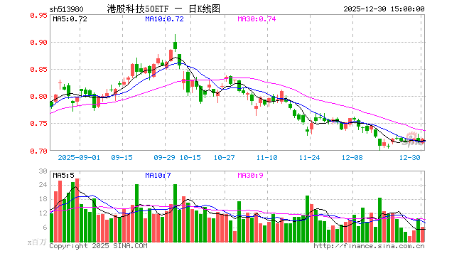 12月30日,港股科技50ETF(513980)涨0.70%,成交额4.52亿元。当日份额减少1.38亿份,最新份额为313.42亿份,近20个交易日份额增加10.37亿份。最新资产净值计算值为227.26亿元。