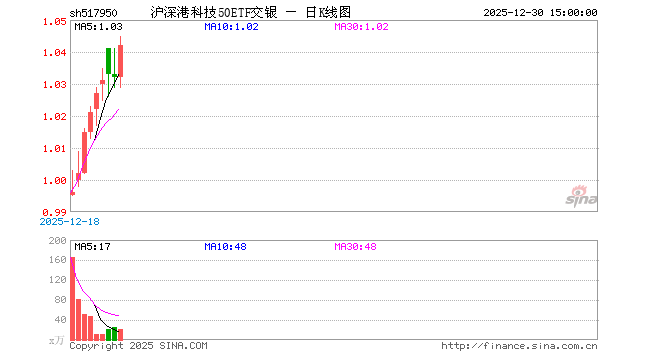 12月30日沪深港科技50ETF交银(517950)份额增加600.00万份,最新份额1.39亿份,最新规模1.45亿元
