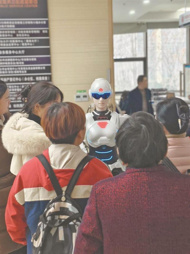 当科技创新邂逅政务服务,会碰撞出怎样的便民火花?近日,芜湖市不动产登记中心政务服务大厅里,奇瑞控股集团旗下墨甲人形机器人“芜小登”正式“入职”(如图),以其灵活的身形、精准的应答、高效的服务引来不少市民驻足点赞,也标志着芜湖不动产登记服务在“人工智能+政务服务”的探索中迈出坚实一步,让“智算赋能”从概念转化为群众看得见、用得上的服务体验。