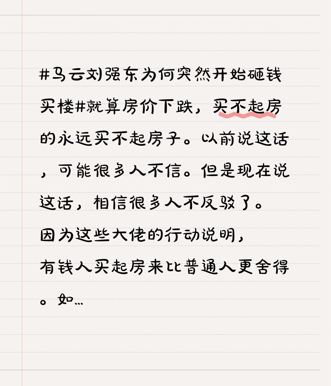 因为这些大佬的行动说明,有钱人买起房来比普通人更舍得。 如果房价真下跌了,那么有钱人就会出手抄底。到时,普买不起房子的普通人依旧还是买不起房子的。