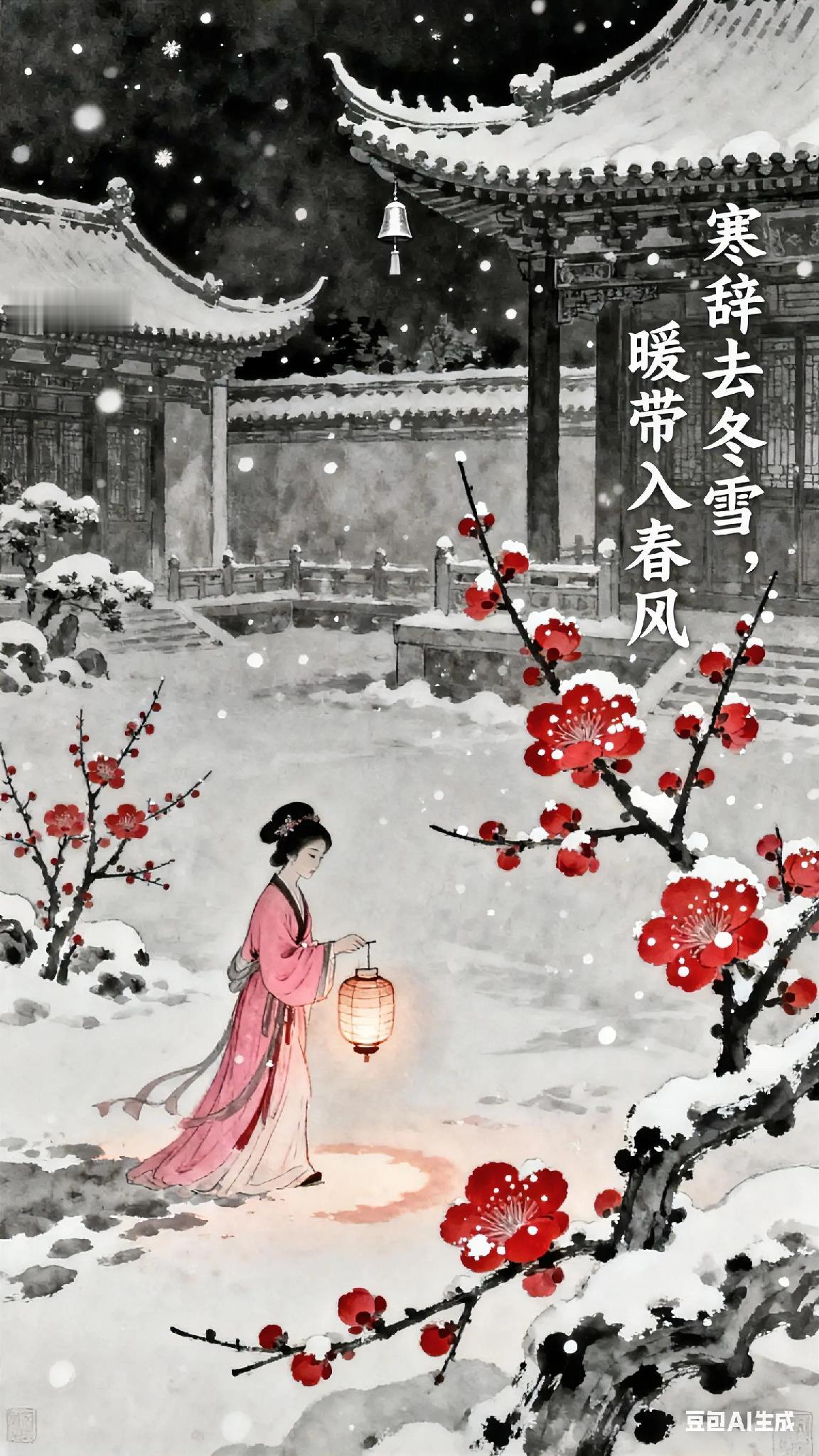 《守岁》唐、李世民。 暮景斜芳殿, 年华丽绮宫。 寒辞去冬雪, 暖带入春风。 阶馥舒梅素, 盘花卷烛红。 共欢新故岁, 迎送一宵中。 《守岁》现代译文: 暮色斜映着芳殿,新年的光华使绮丽的宫殿更显辉煌。 寒气送走了冬雪,暖意携来了春风。 台阶旁梅花吐露素雅芬芳,烛台上盘绕的红烛火光跃动。 君臣欢聚共庆新旧年岁更替,在这除夕之夜一同迎接新春的到来。 新年古诗 长安守岁 唐朝新年 天天古诗词 你记得最深的一首古诗词是什么 你最喜欢的一句古诗词是什么