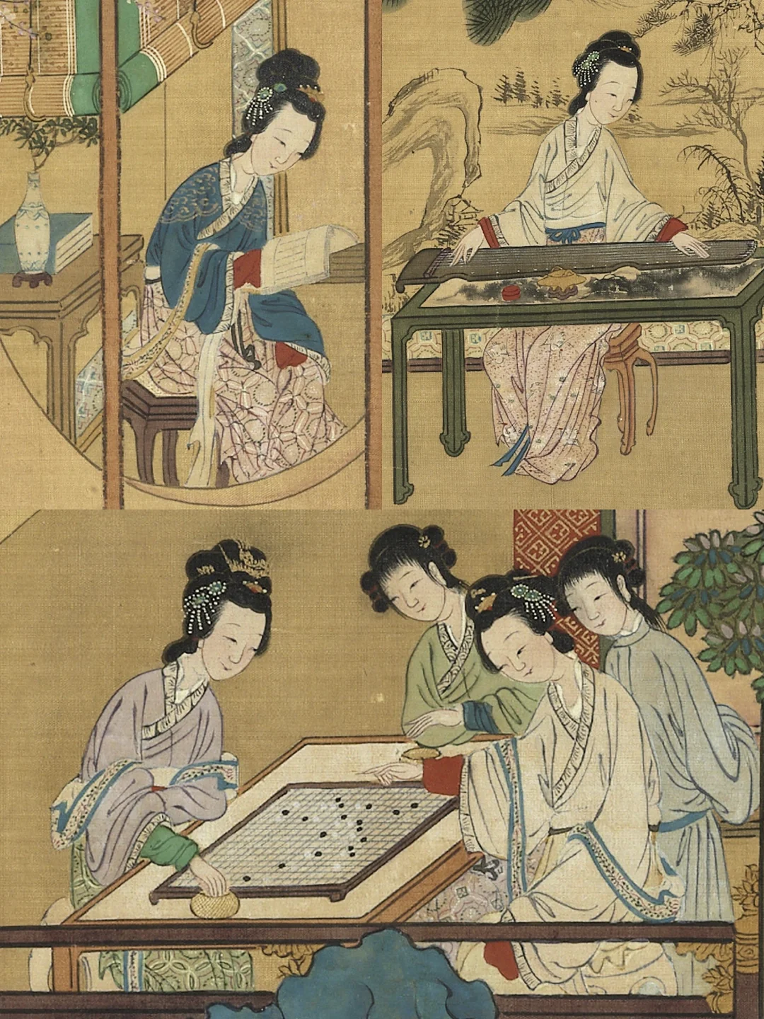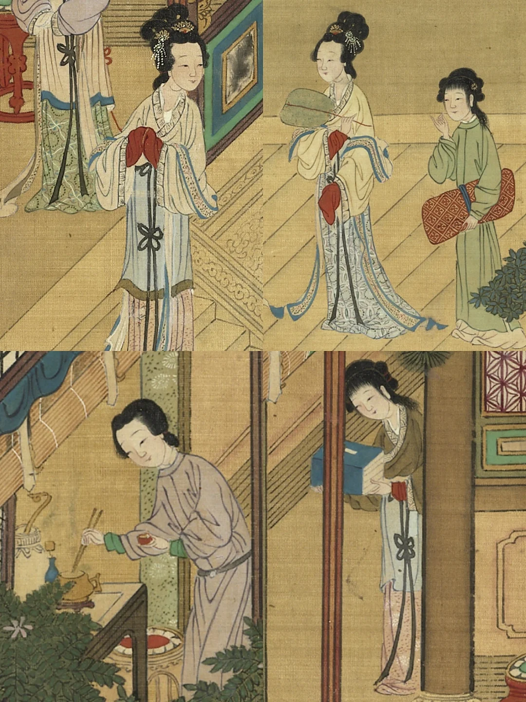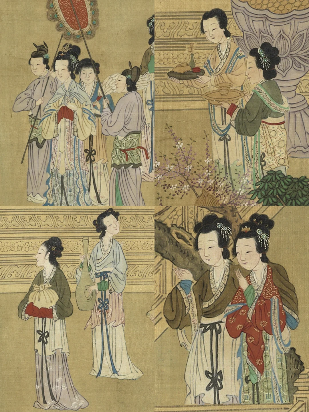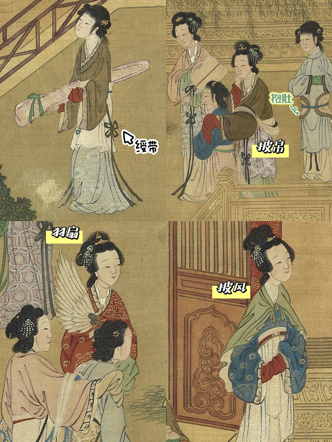 这里堪称时尚图鉴,画中女子们身着襦裙,系