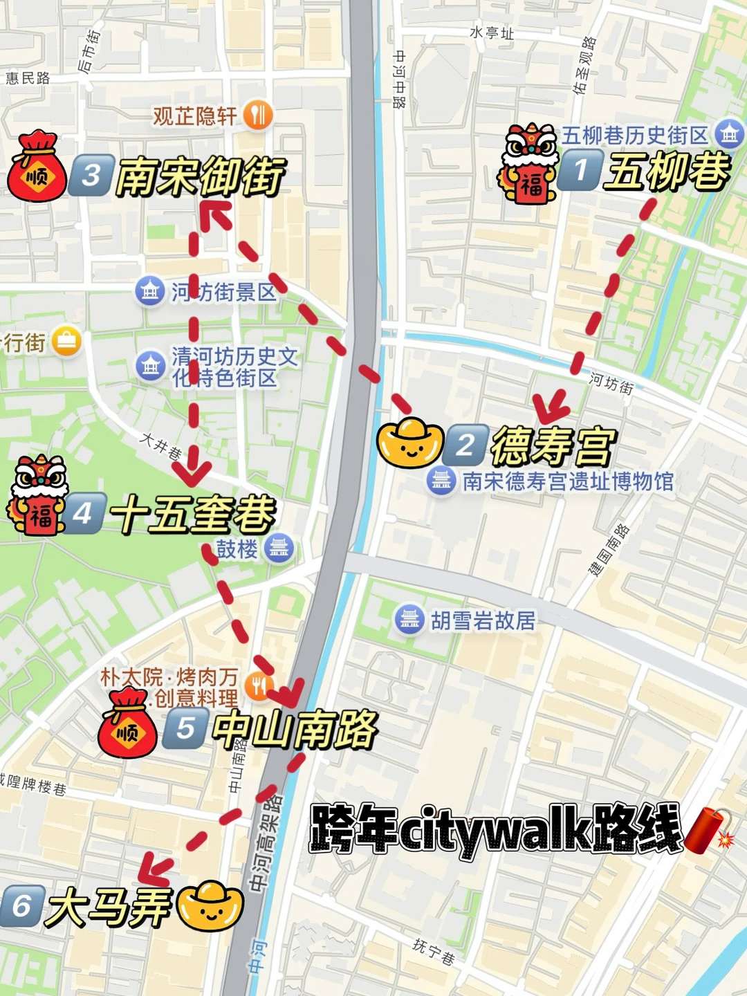 新年逛杭州除了西湖 我更推荐这条小众跨年citywalk 一半老城烟火,一半古巷红灯🏮 白天感受杭城的市井文化和南宋底韵 晚上直达市中心,解锁跨年惊喜福利 新年氛围直接拉满~ 🚶跨年路线 五柳巷 ➠ 德寿宫  ➠中山南路➠ 大马弄 ➠ 十五奎巷 ➠  南宋御街➠杭州大厦(跨年薅羊毛活动) ❶五柳巷:因南宋五柳园得名,民国建筑藏着网红咖啡店,闹中取静超适合漫步拍照。 ❷德寿宫:南宋皇宫遗址,需提前预约。 ❸南宋御街:南宋都城中轴线,古街宋韵浓厚,适合逛吃~ ❹十五奎巷:巷内文艺小店、特色工作室云集,还能欣赏古色古香的建筑,也是远眺鼓楼的最美机位。 ❺中山南路:市井味很浓,杭州人从小到大爱逛的老街,有很多老底子杭州味! ❻大马弄:紧邻中山南路,是当地居民的菜市场,充满烟火气,能买到各种地道的杭州小吃和新鲜食材 ❼杭州大厦:走到这里,就像从杭州的“过去”走到了“现在”。 这座陪伴了几代杭州人成长的商业地标,早已超越一座商场。