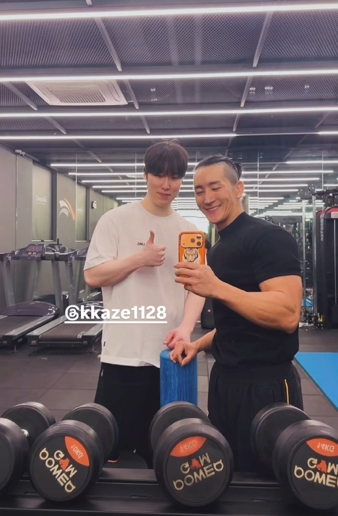 31号还在健身的三兄弟教练分享与Kanavi Gumayusi和zeka合照
