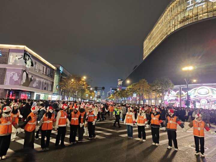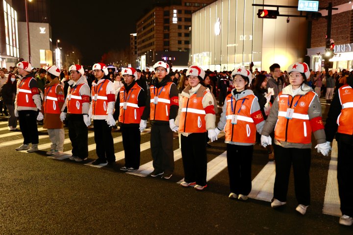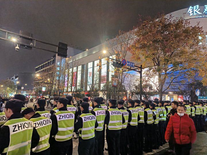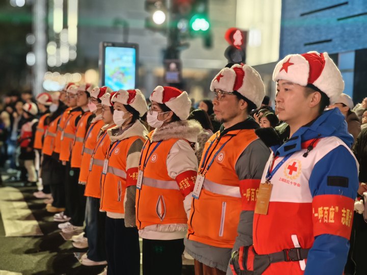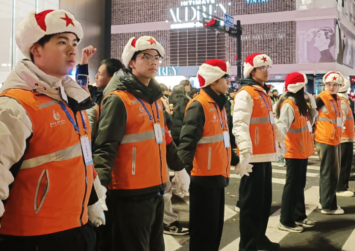 “志愿者有高校学生、企业职工、医务人员、救援队员、社区居民、社会工作者、媒体记者和网络直播从业者等等,大家凝心聚力,守护城市平安。大家从下午4点半开始,一直到服务到明日凌晨1点。