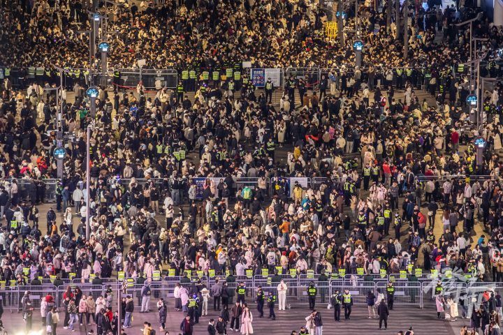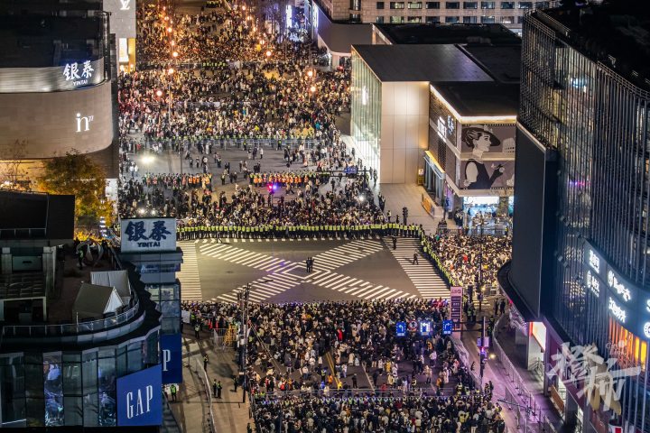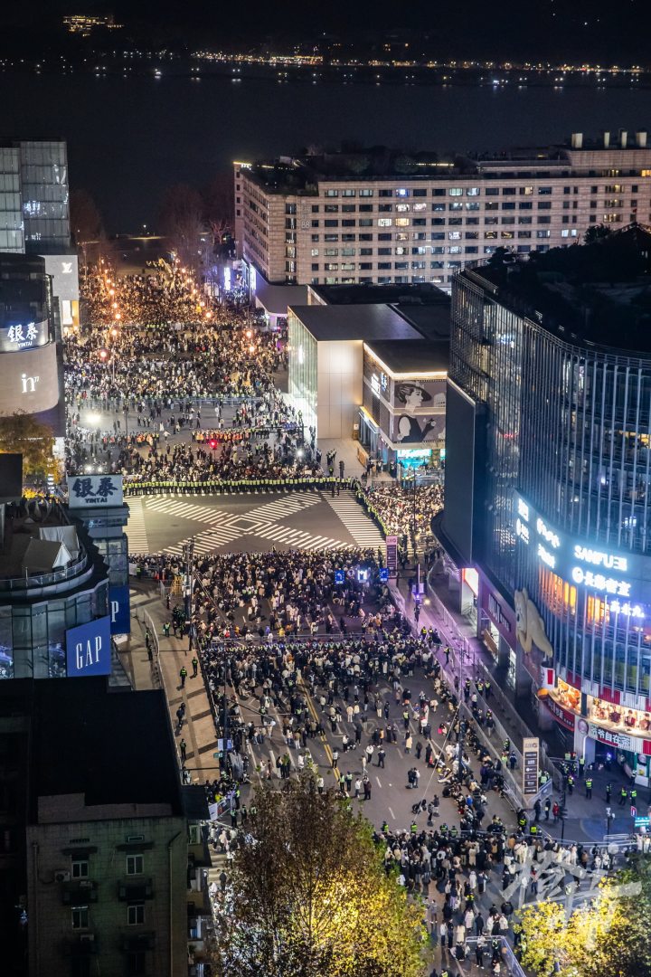 跨年夜,从平海路附近高楼俯瞰,湖滨商圈人潮涌动,秩序井然。记者陈中秋摄