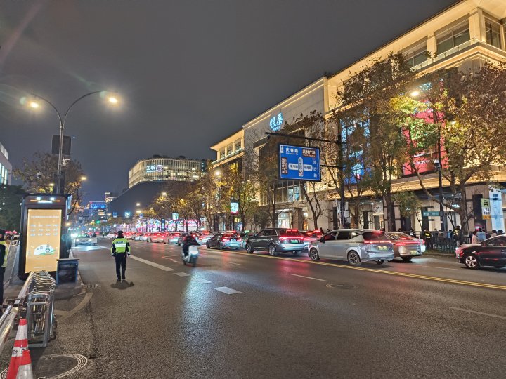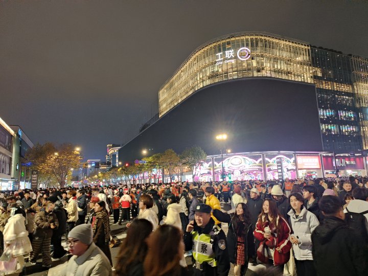 晚上九点,延安路以学士路为分界线,往南全是人从众,往北道路上的人流并不大。