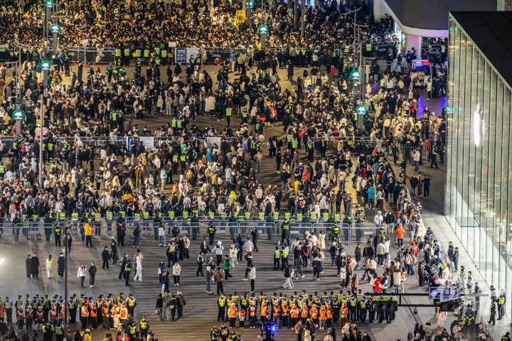 21点48分,记者看到,路口车辆消失,只有人的洪流。