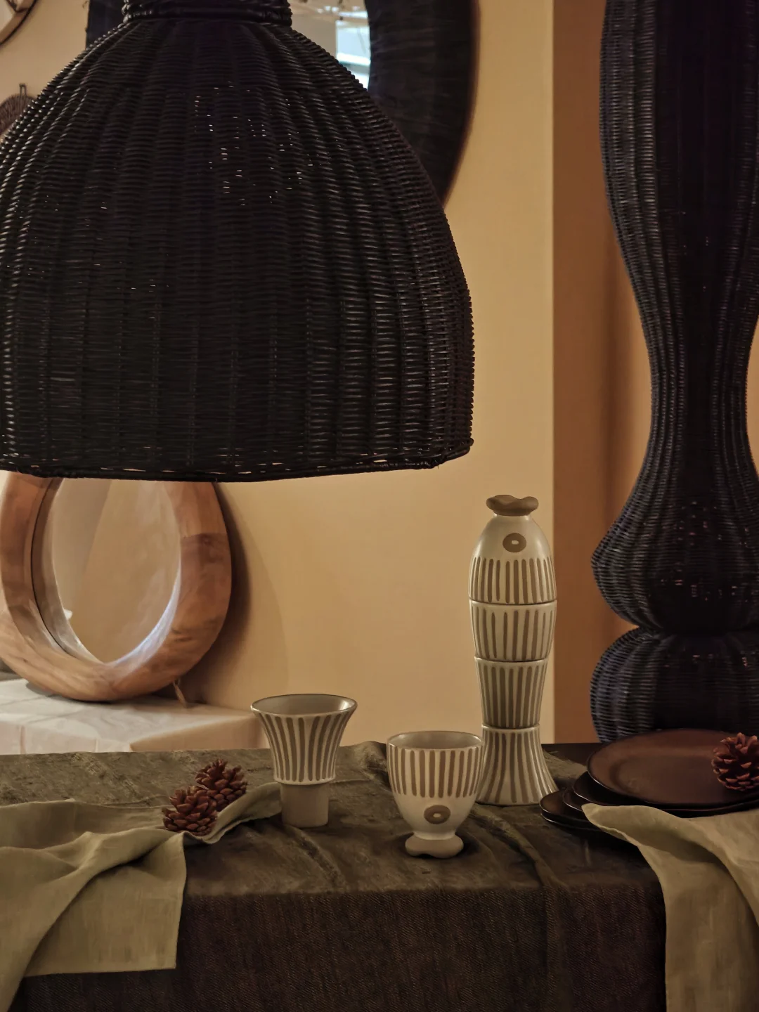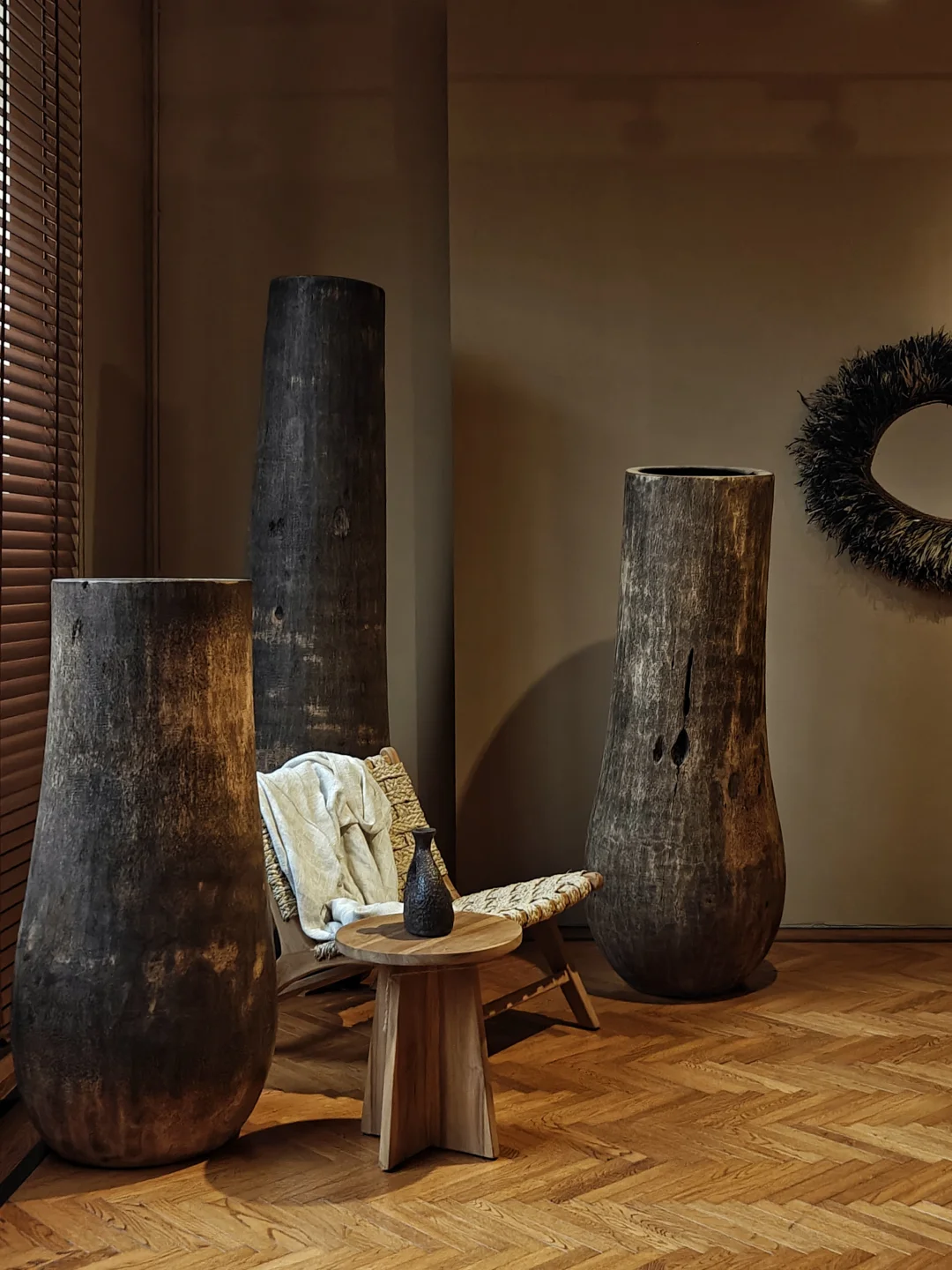 🏝️自然色系的藤编器物、手作陶瓶、黏土器物,把热带雨林的节律、海岛的慢时光编织入日常器物的肌理中。充满贴近土地的东南亚气息,粗粝质朴。在现场的灯光、木地板、布料装置的加持下,似乎完成了一场都市人的精神疗愈。
