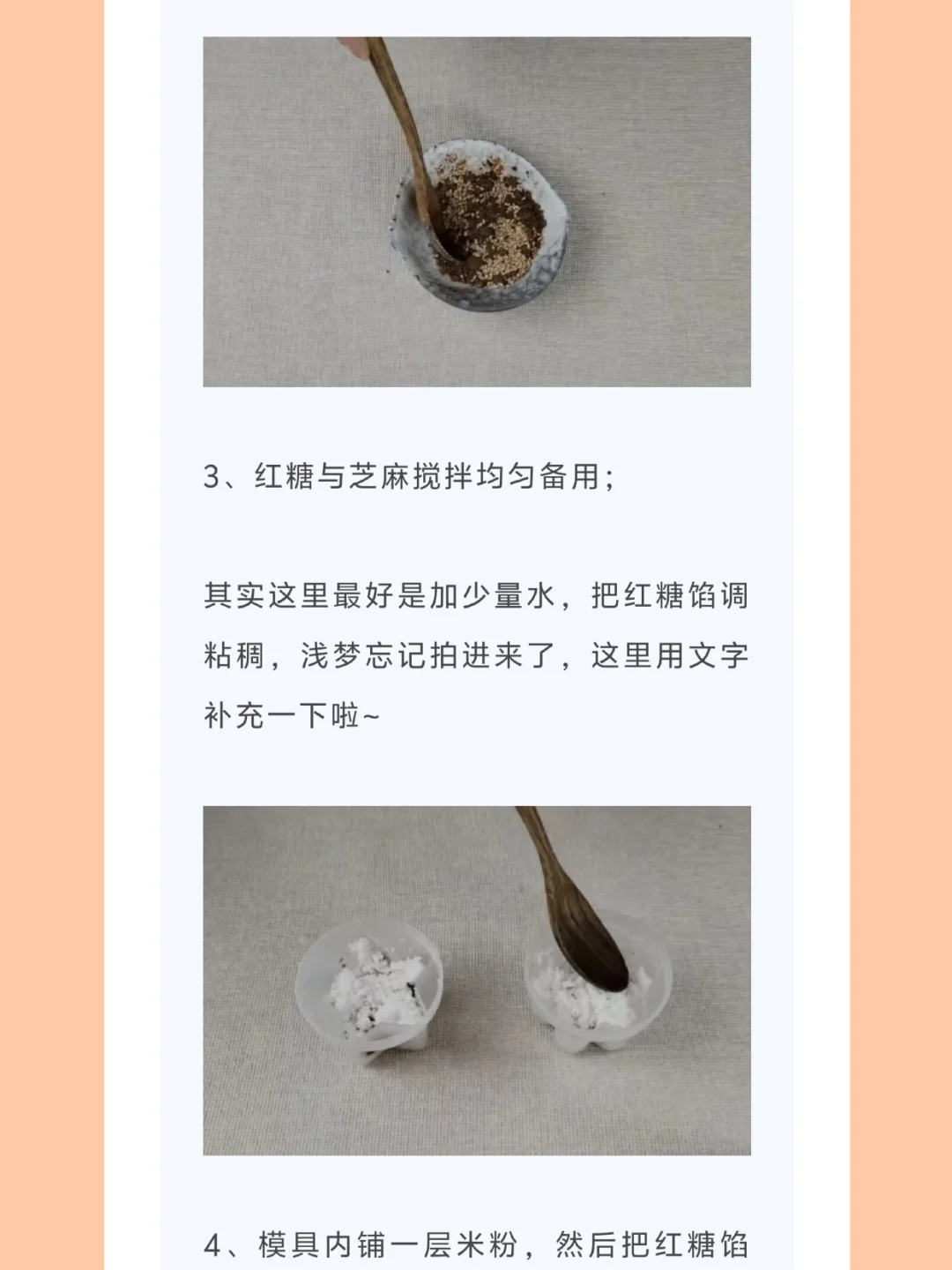 [种草R]其实这里最好是加少量水,把红糖馅调粘稠,浅梦忘记拍进来了,这里用文字补充一下啦~