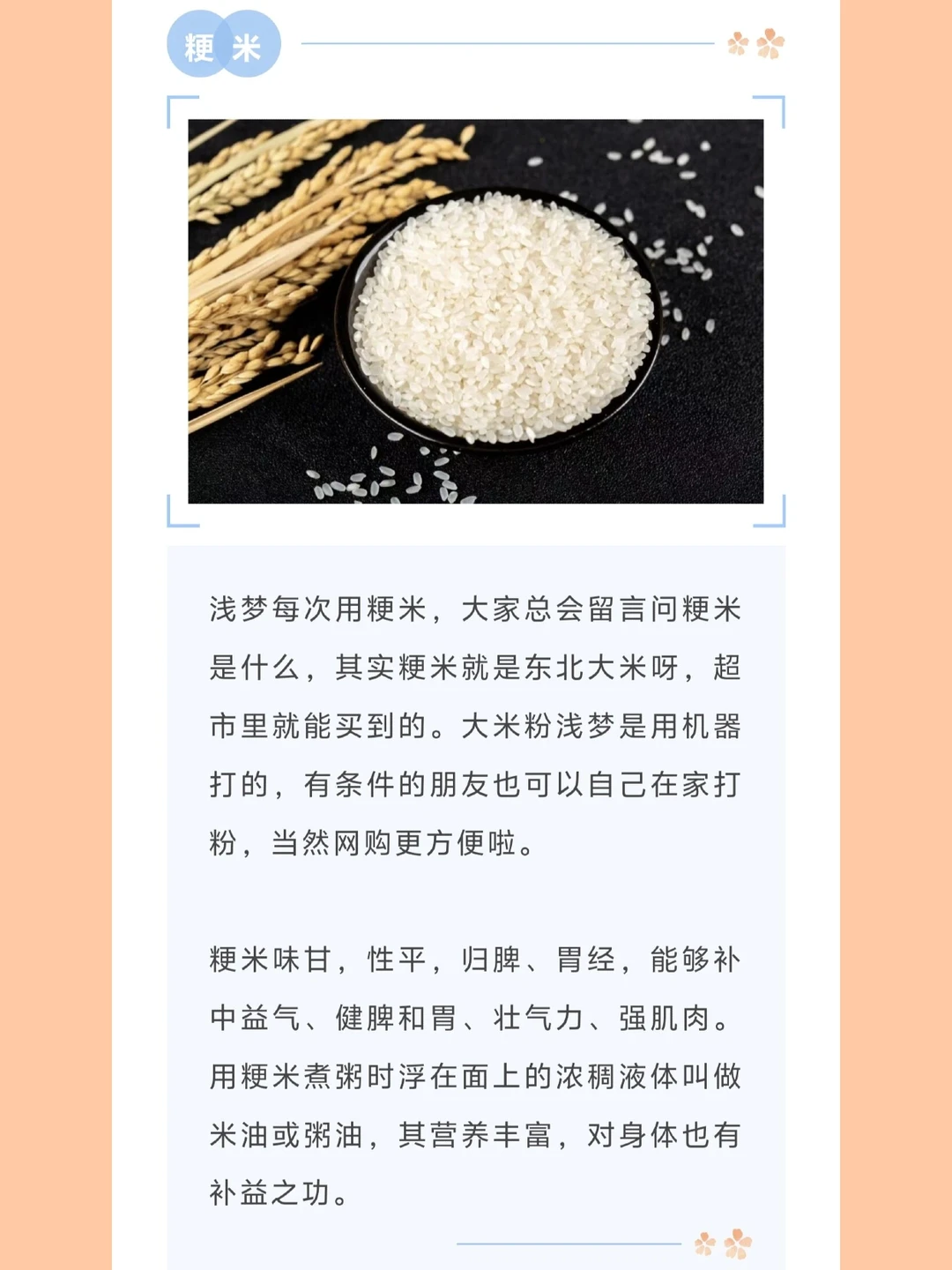 [向右R]粳米(水稻里的一个好品种),有条件的朋友可以买有机的东北大米,自己在家用打粉机打粉,当然也可以买现成的大米粉。