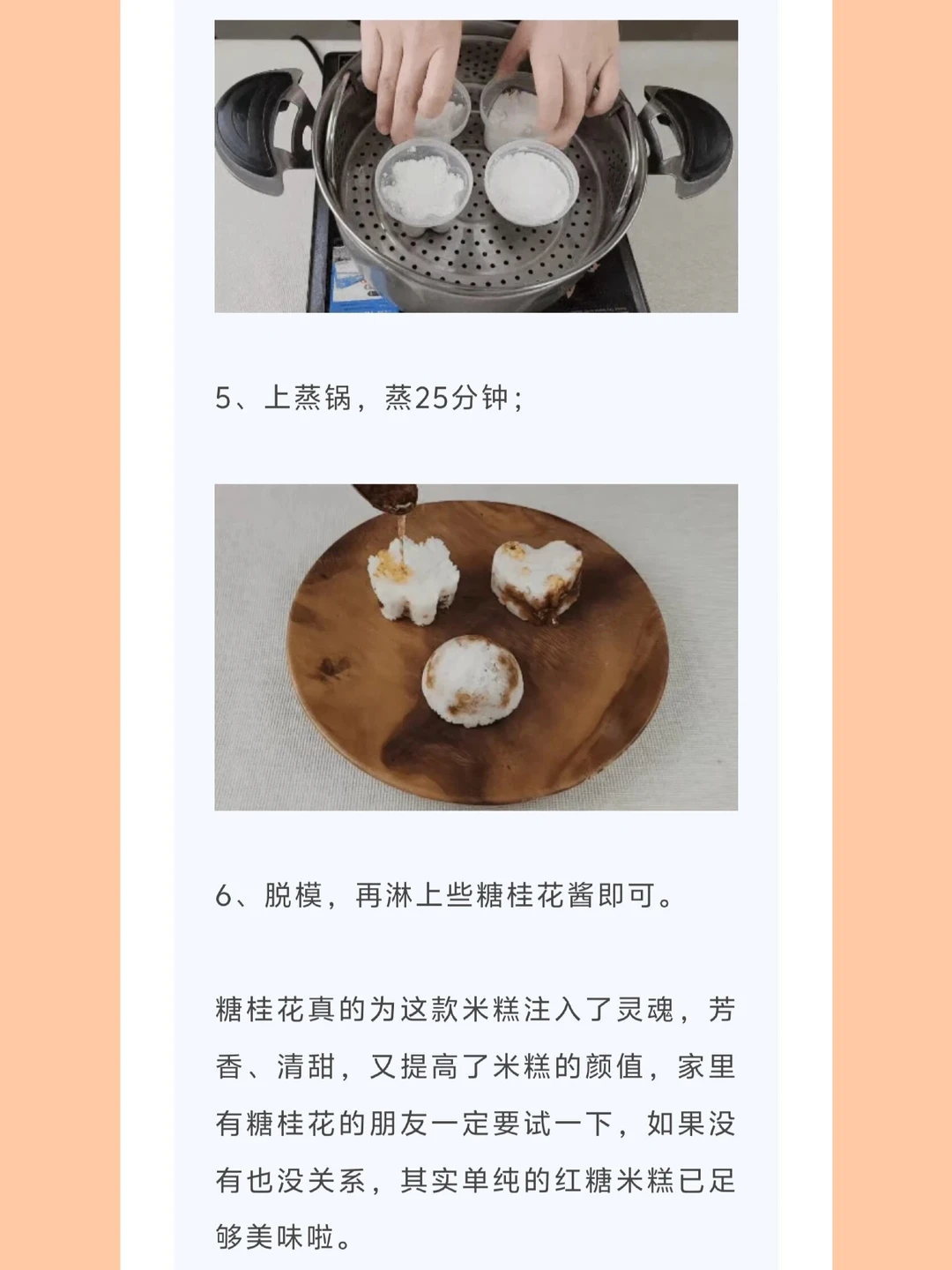 [种草R]糖桂花真的为这款米糕注入了灵魂,芳香、清甜,又提高了米糕的颜值,家里有糖桂花的朋友一定要试一下,如果没有也没关系,其实单纯的红糖米糕已足够美味啦。