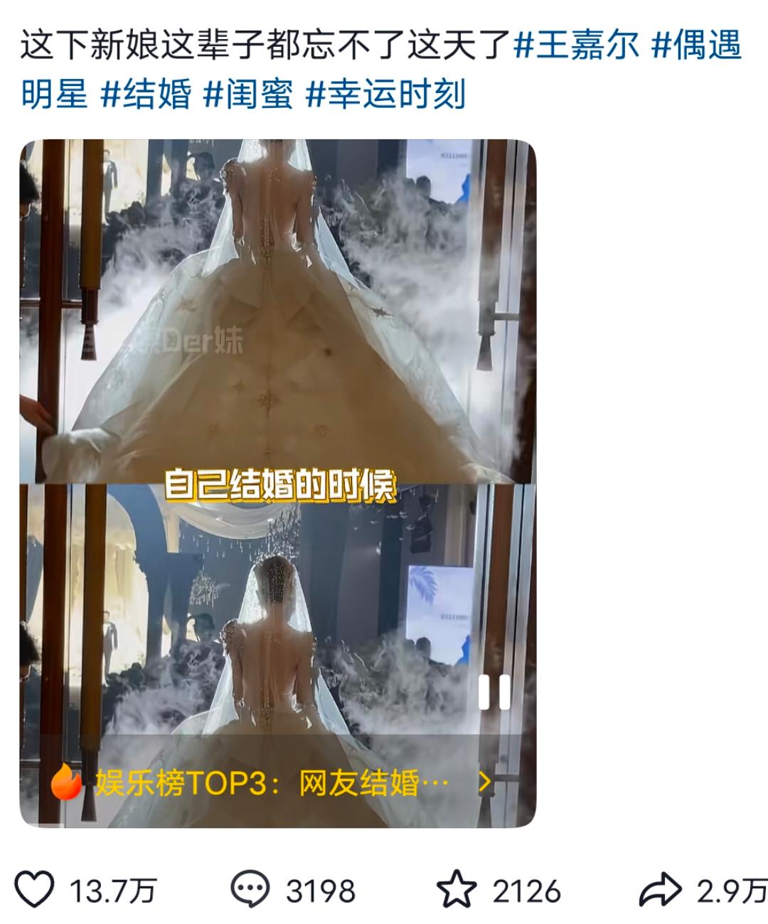 如何看待海南某女子,结婚当天电梯偶遇王嘉尔,合照后发文遇到“真老公了”? 据悉该女子社交媒体上,并未出现新郎身影,也无婚恋相关视频。 唯一男性身影,便是一席婚纱遇见“王嘉尔”的合照。 新娘发文表示: “谁懂啊!天呐!婚礼当天遇到了真老公!!!超 “喜欢jackson 结果就在最幸福的一天遇见 “了!!!!嘴都要笑烂了!根本控制不住自己的表情!!!紧张到颤抖!嘉尔真的好帅!!!素颜真的帅我一脸!人真的太好了,原本以为合照无望的,结果嘉尔看到过来主动合影!今晚完全睡不着啊!这谁睡得着啊!!!” 对此网友辣评: “《新郎回家发现墙上挂着的不是自己》” “新郎仇人看到这一幕释然了。” “新娘在自己结婚的时候,遇到了最想结婚的人。” 该视频一经发出,迅速冲上热搜,受到广泛关注。 在各大营销号,评论区很快就出现了意见分化。 男女双方各持己见。 男生认为这是对婚姻的不忠。 女性则认为这是幸运,能在最美的时刻,遇到自己喜欢的明星。 对此大家如何看待呢,从中又折射当今情感问题,与男女思维差异呢? ------------------------------------ 假老公赚钱给真老公花。
