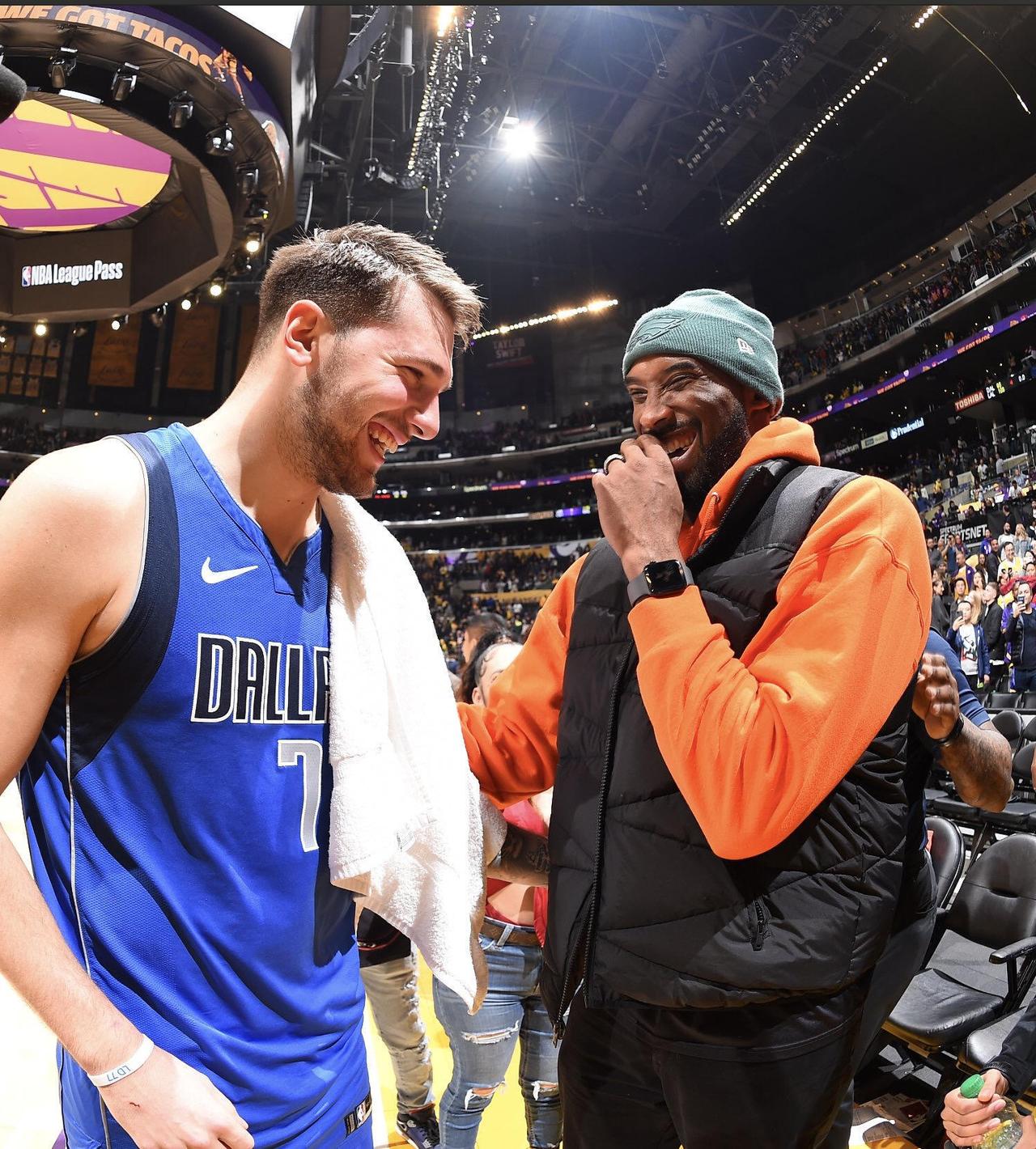 六年前,科比和Gigi最后一次来到斯台普斯。 东契奇随独行侠到访斯台普斯,gigi的偶像是东契奇,科比陪女儿来到东契奇。 几年后东契奇加盟湖人,他回忆说,科比能记住我的名字都是我莫大的荣幸。