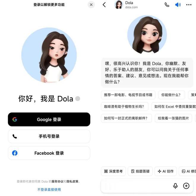 Dola前身为2023年8月上线的Cici,主要面向菲律宾、印尼及拉美等新兴市场,定位为集对话问答、写作翻译及图像生成于一体的一站式AI助手。今年底,Cici正式更名为Dola。