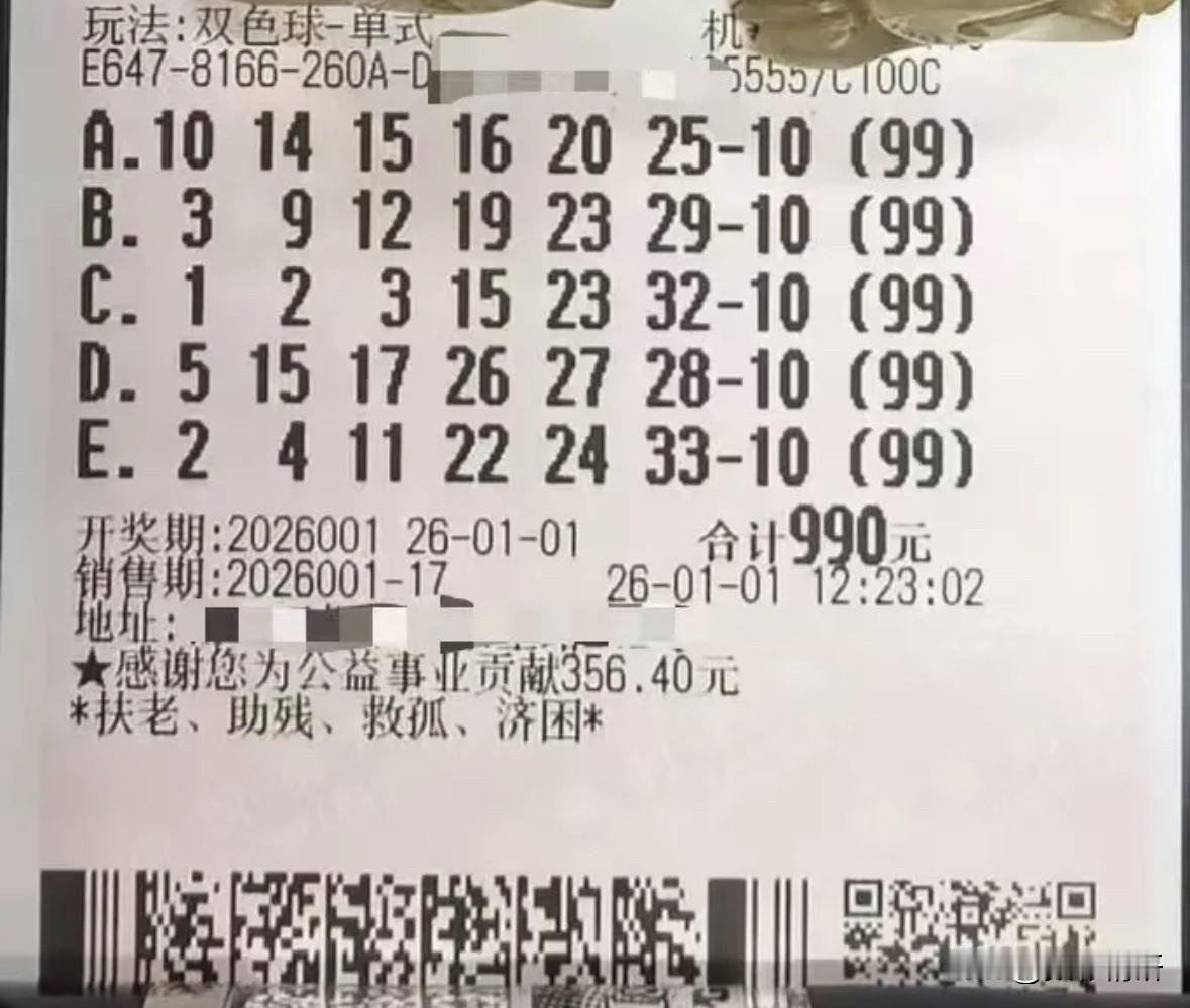 新年的第一期,双色球第26001期如期而至,“99倍哥”依旧雷打不动地登场。他的