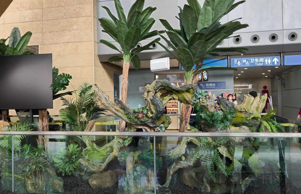 该项目以“城市生态会客厅”为定位,在航站楼到达区打造沉浸式生态互动空间。首批“入驻”的包括细尾獴、虎皮鹦鹉、兔豚鼠等来自云南野生动物园的珍稀动物,旅客在候机、转机间隙即可近距离观赏、互动,体验“零距离”的自然邂逅。