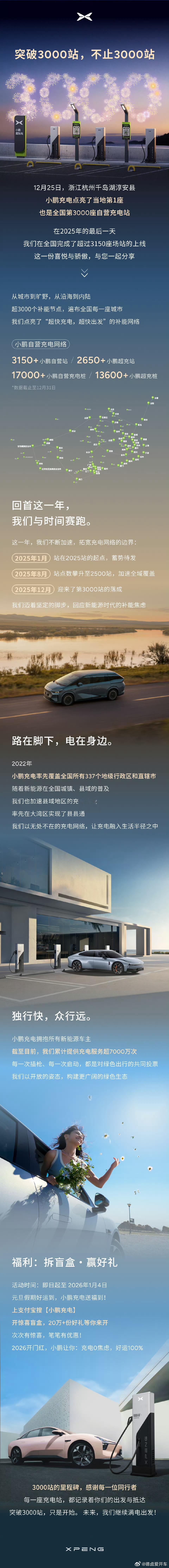 小鹏12月销量为 37508台,其中,小鹏 X9 当月销量 5424 台,小鹏也是为数不多达成销量目标的车企,2025 年全年小鹏实现429445 台交付量,同时,小鹏自营超充站数量达到了3150+座。小鹏汽车新能源汽车
