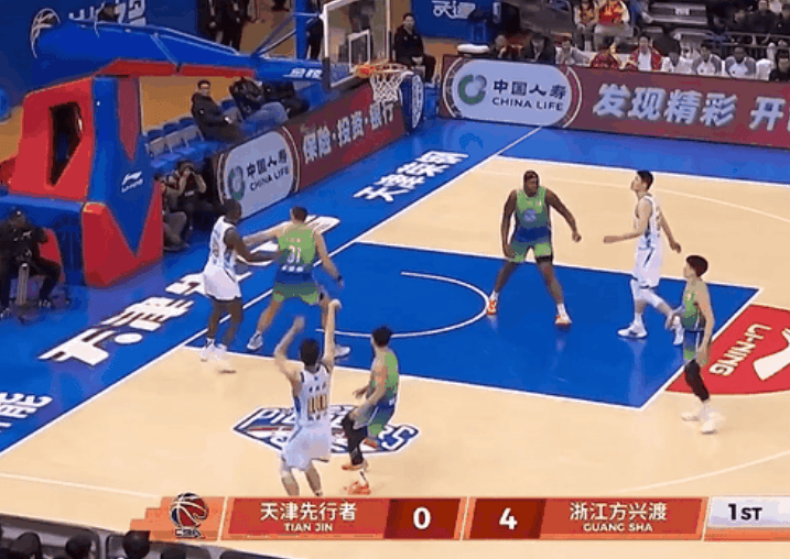 第一节比赛,朱俊龙三分抬手就有空心入网,广厦开局打出7-0高潮领先天津。
