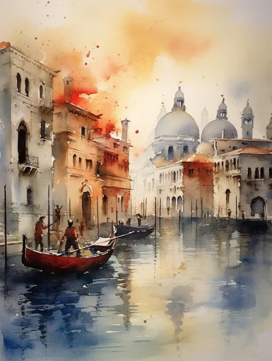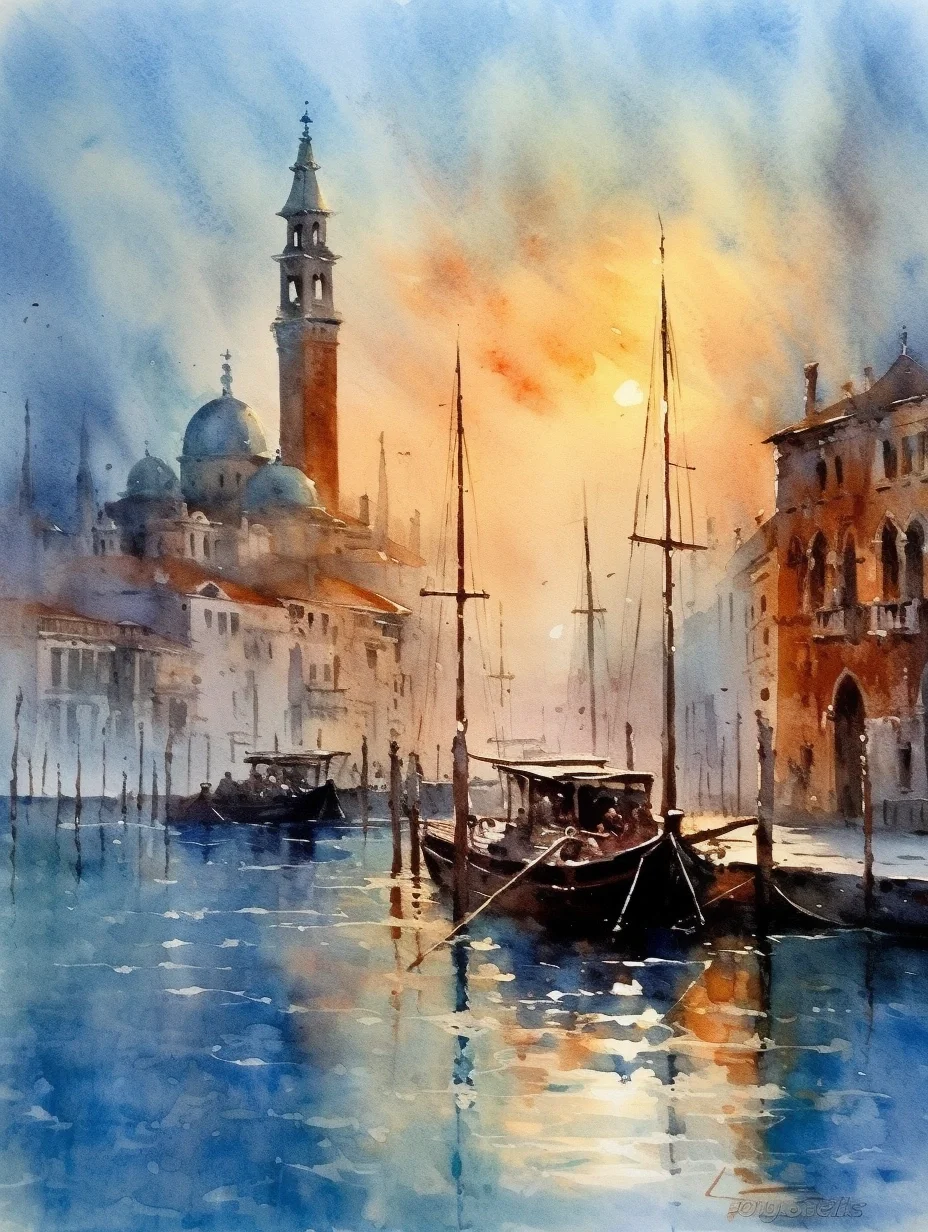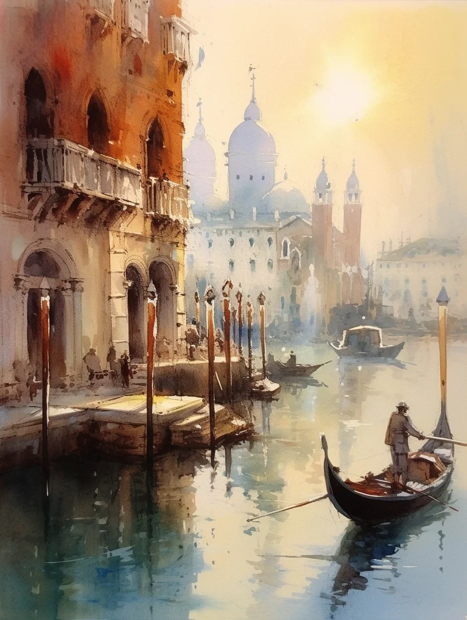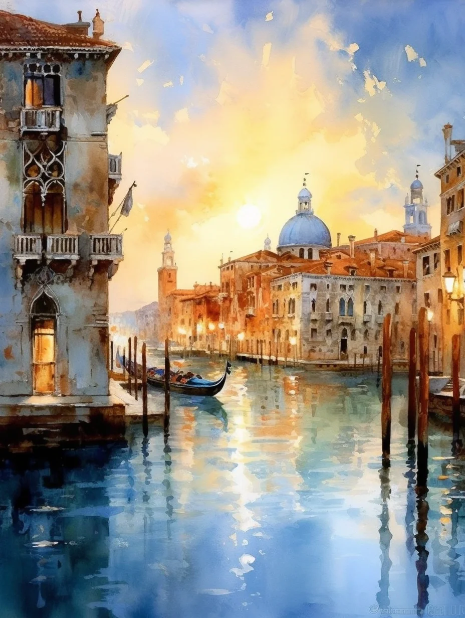 水彩 midjourney AI 水彩风景 威尼斯
